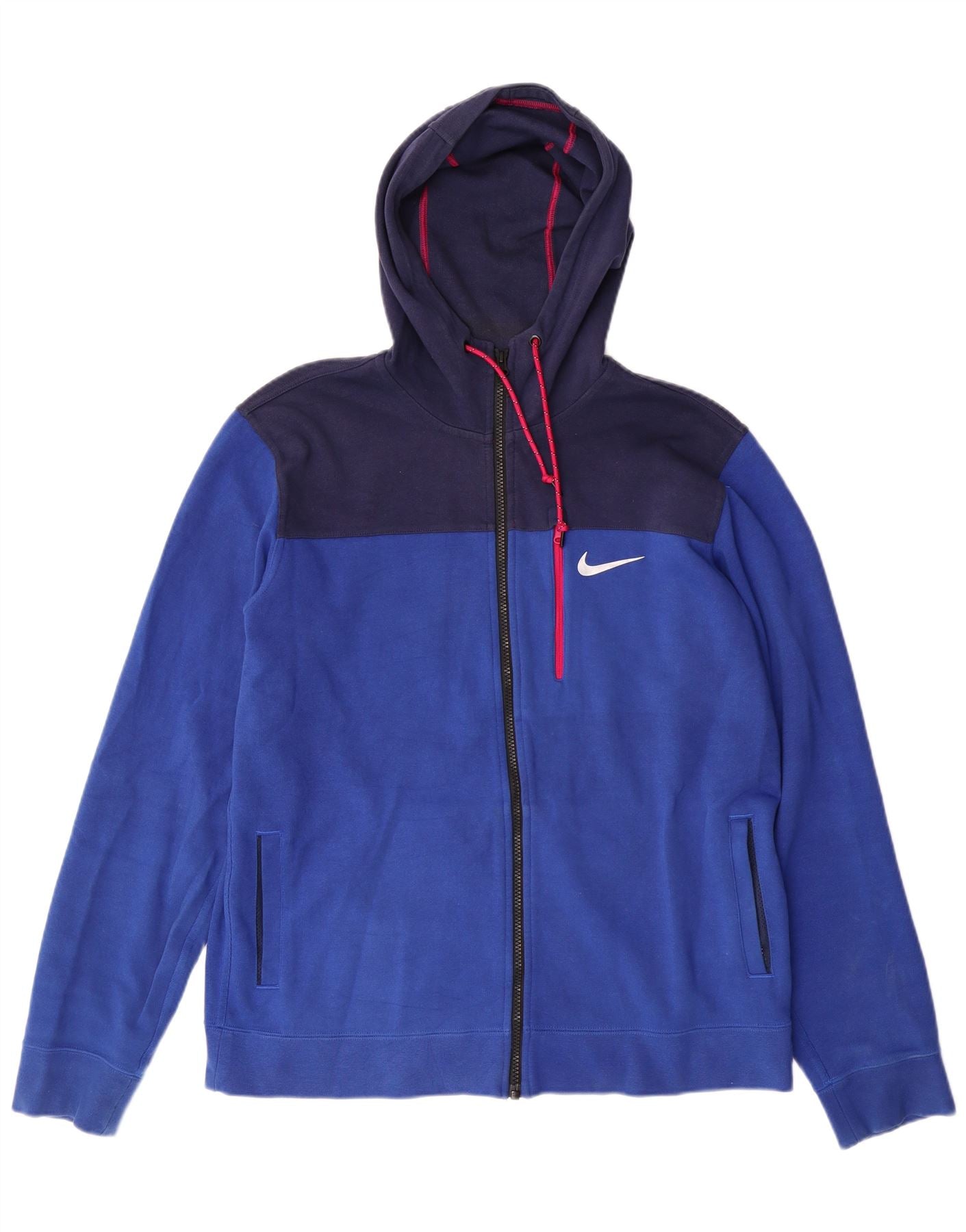 Мужской свитер с капюшоном на молнии NIKE, большой синий, хлопок с цветными блоками
