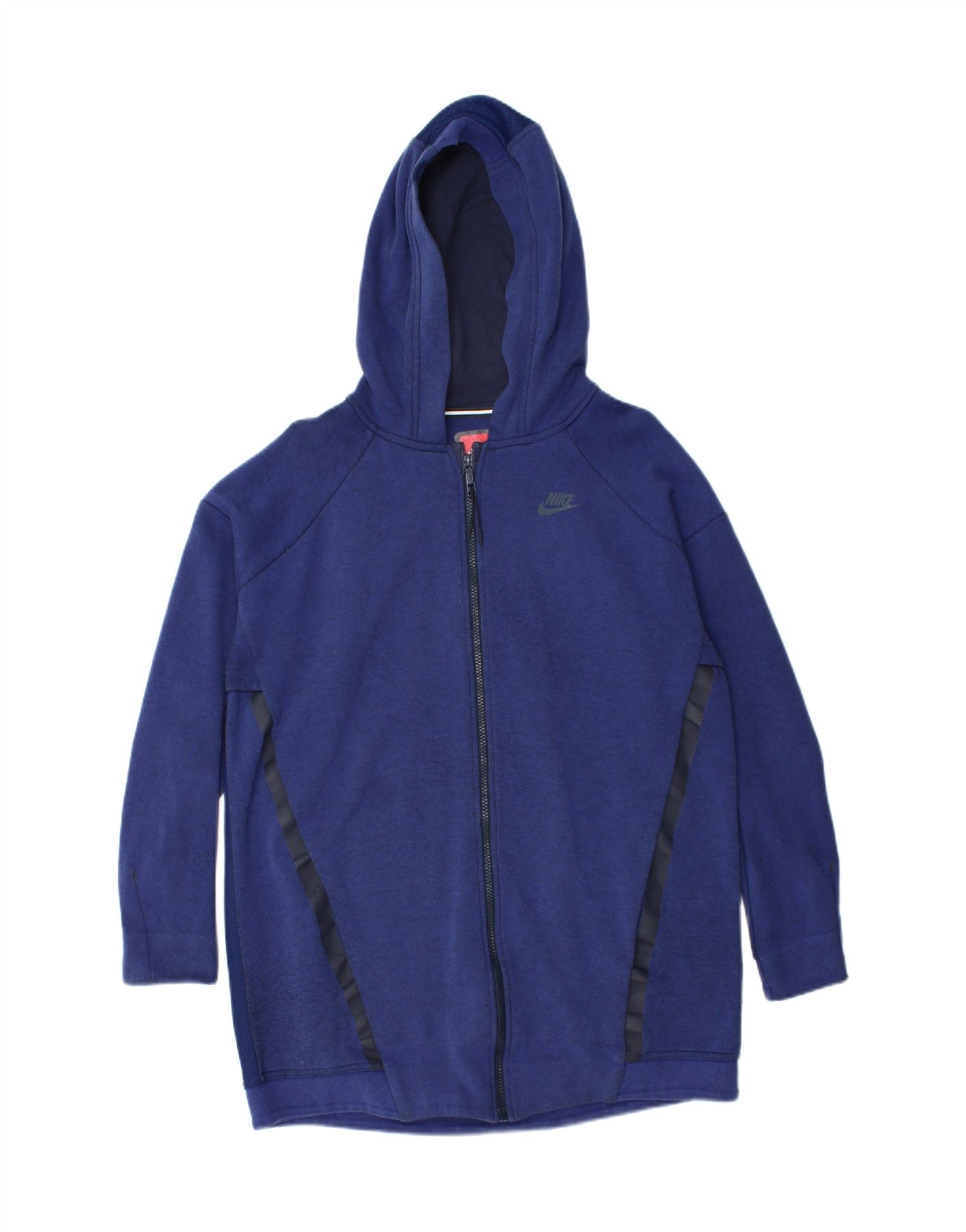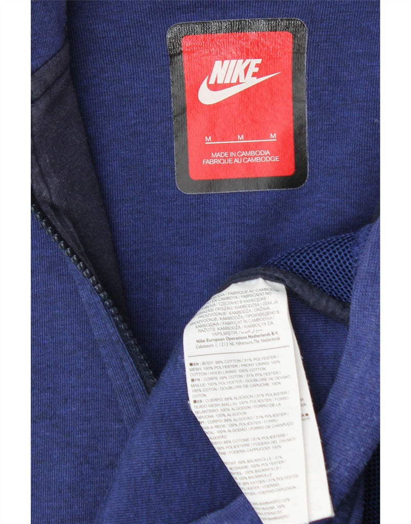 Мужской свитер с капюшоном на молнии NIKE, хлопок среднего синего цвета с цветными блоками