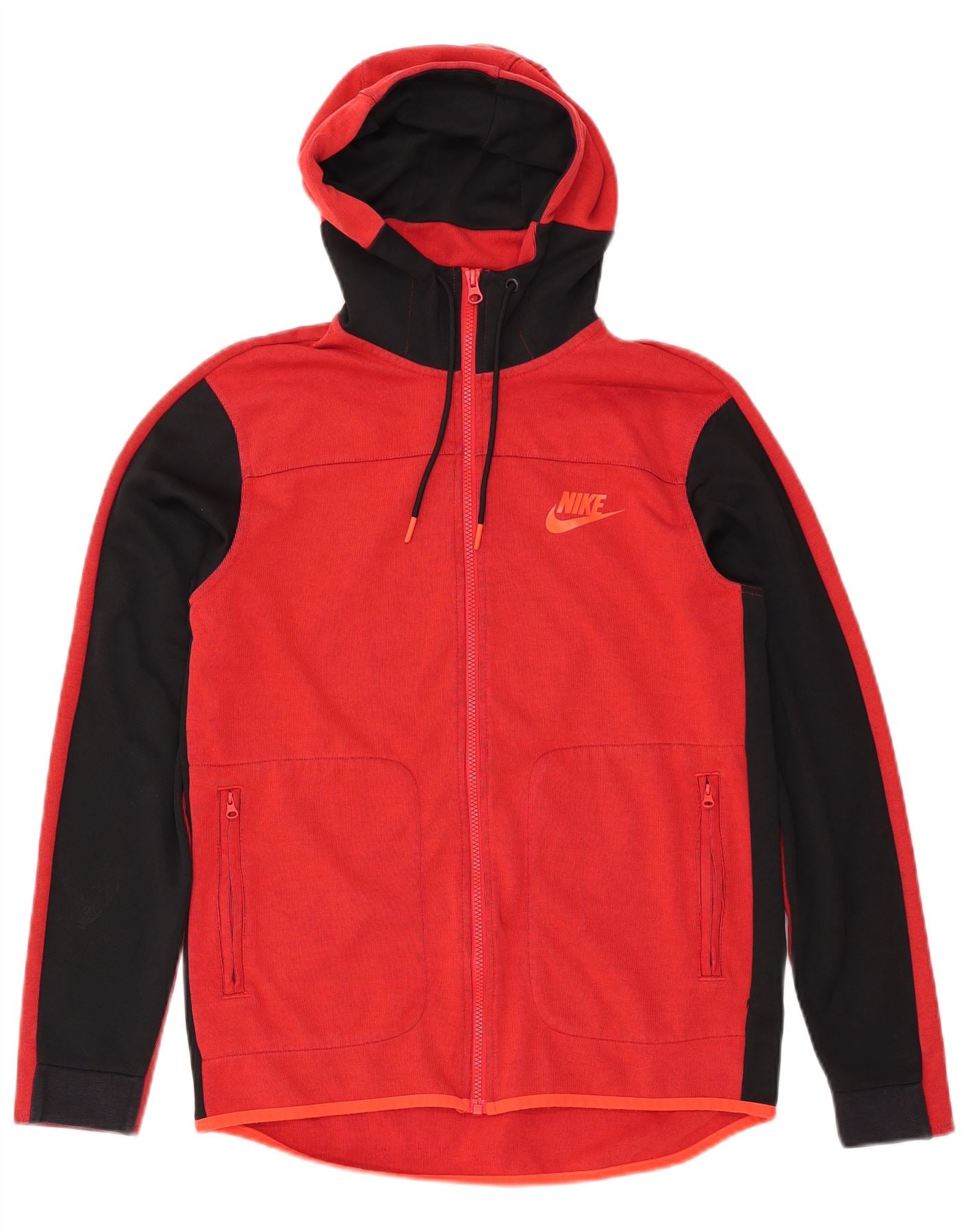 Мужской свитер с капюшоном на молнии NIKE, хлопок среднего красного цвета с цветными блоками