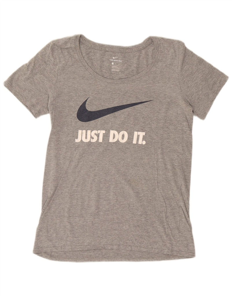 NIKE Womens Athletic Cut Graphic T-Shirt Top UK 10 Small Grey Cotton
