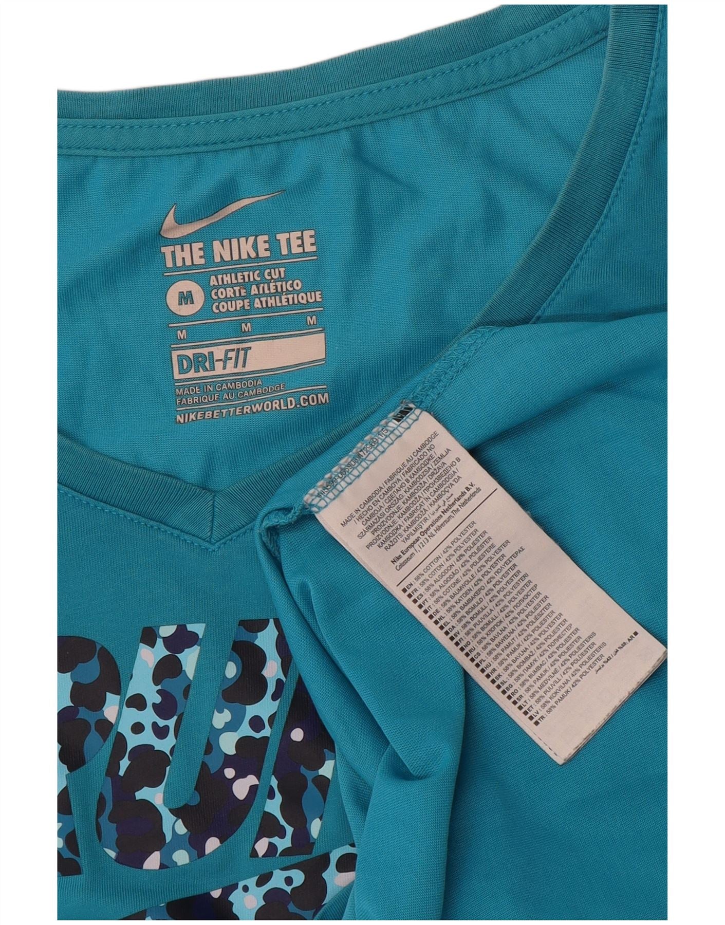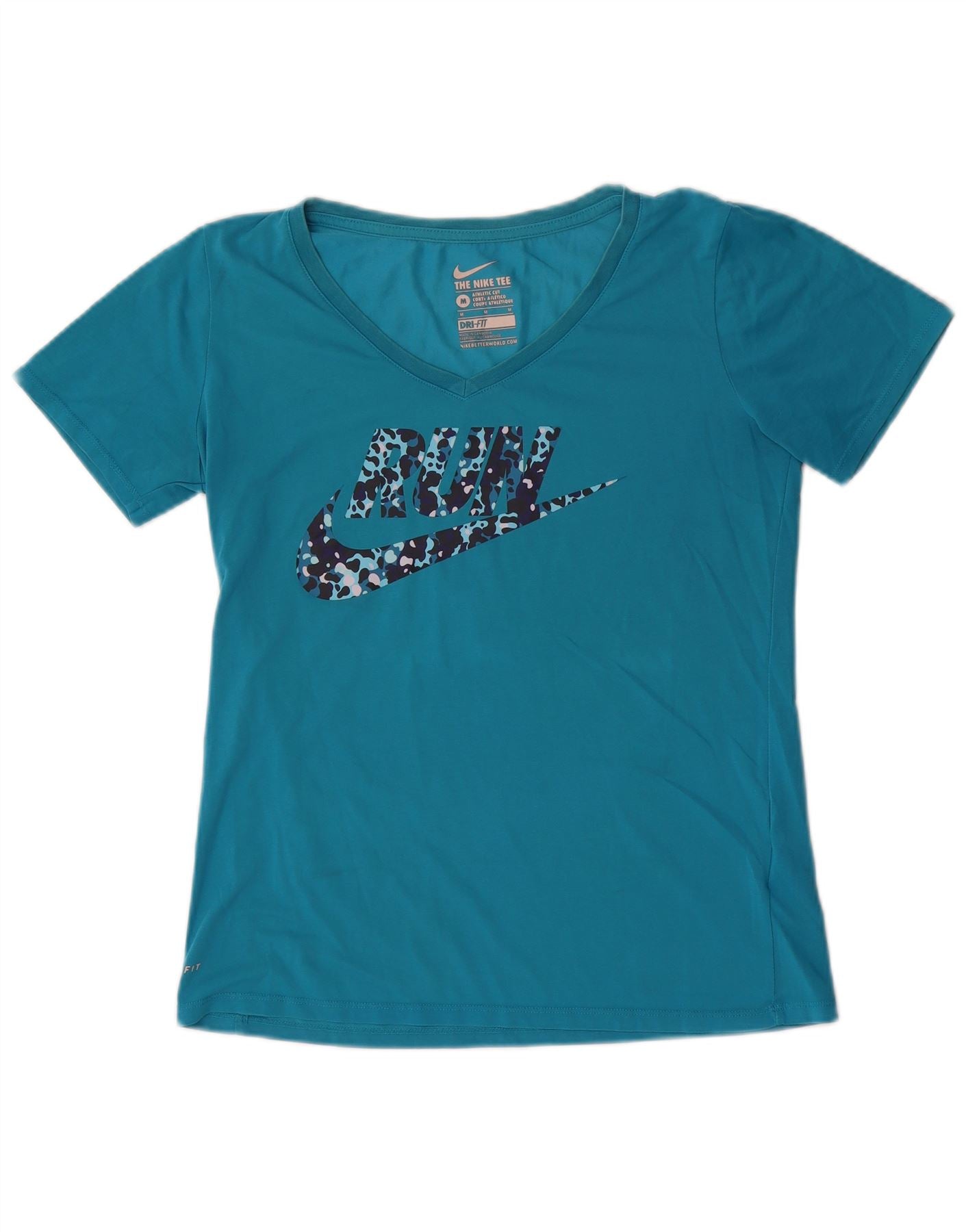 NIKE Womens Athletic Cut Graphic T-Shirt Top UK 14 Medium Blue Cotton