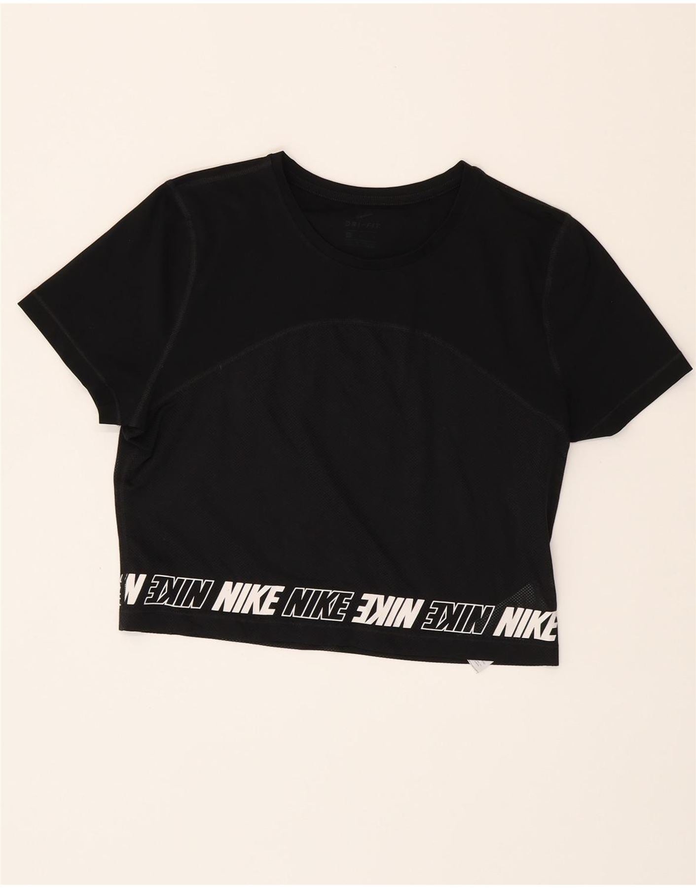 NIKE Womens Crop Graphic T-Shirt Top UK 16 Large Black Polyester