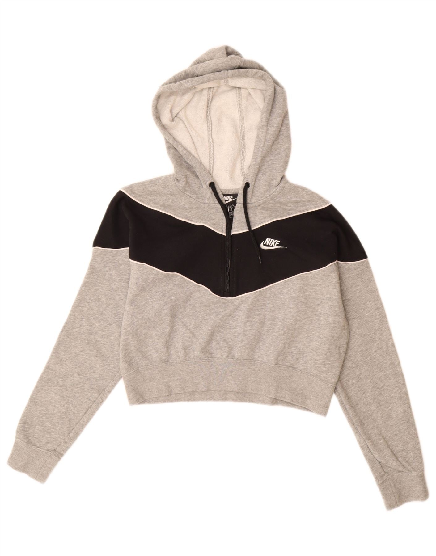 Женский укороченный джемпер с капюшоном NIKE UK 14, средний серый цвет, хлопок с цветными блоками