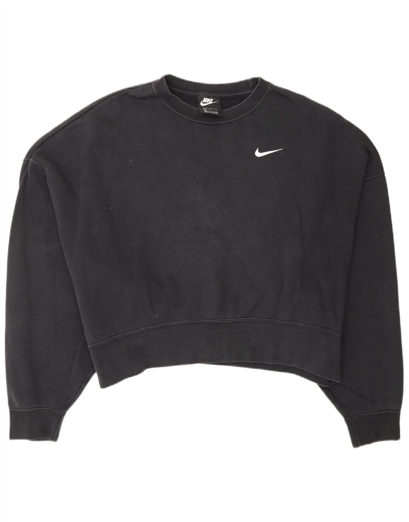NIKE Womens Crop Oversized Sweatshirt Jumper UK 10 Small Black Cotton