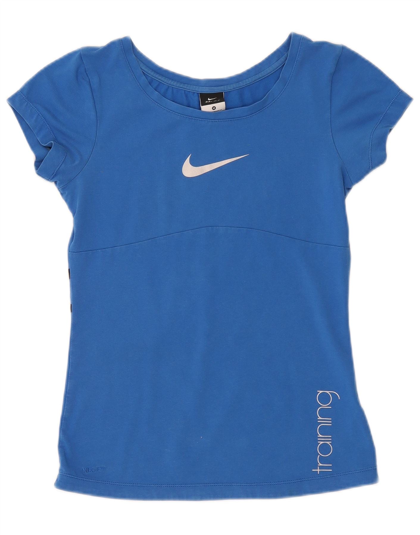 NIKE Womens Dri Fit Graphic T-Shirt Top UK 12/14 Medium Blue Striped