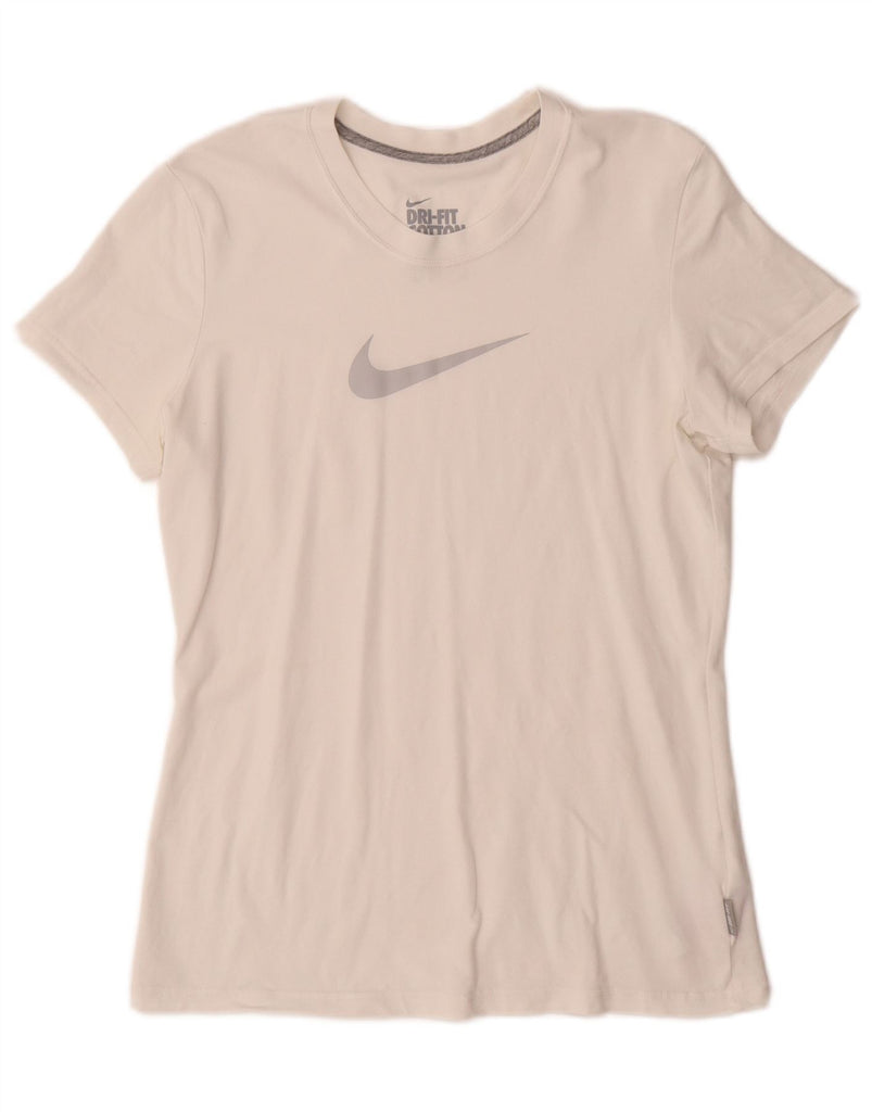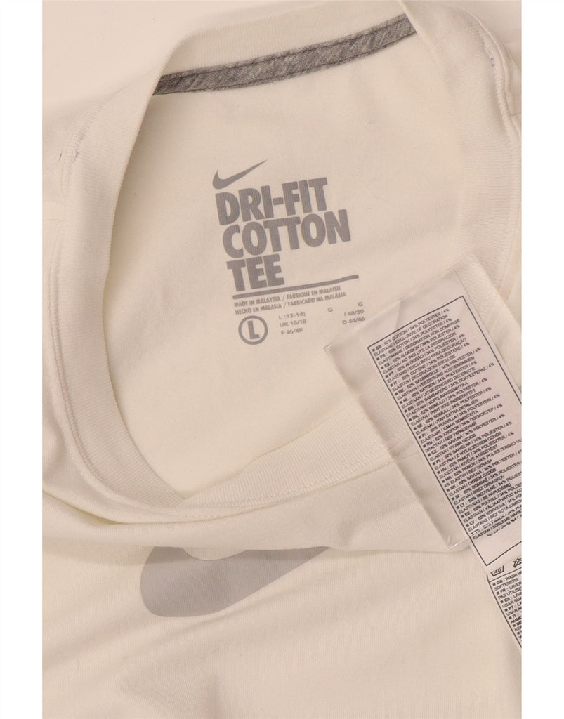NIKE Womens Dri Fit Graphic T-Shirt Top UK 16/18 Large White Cotton
