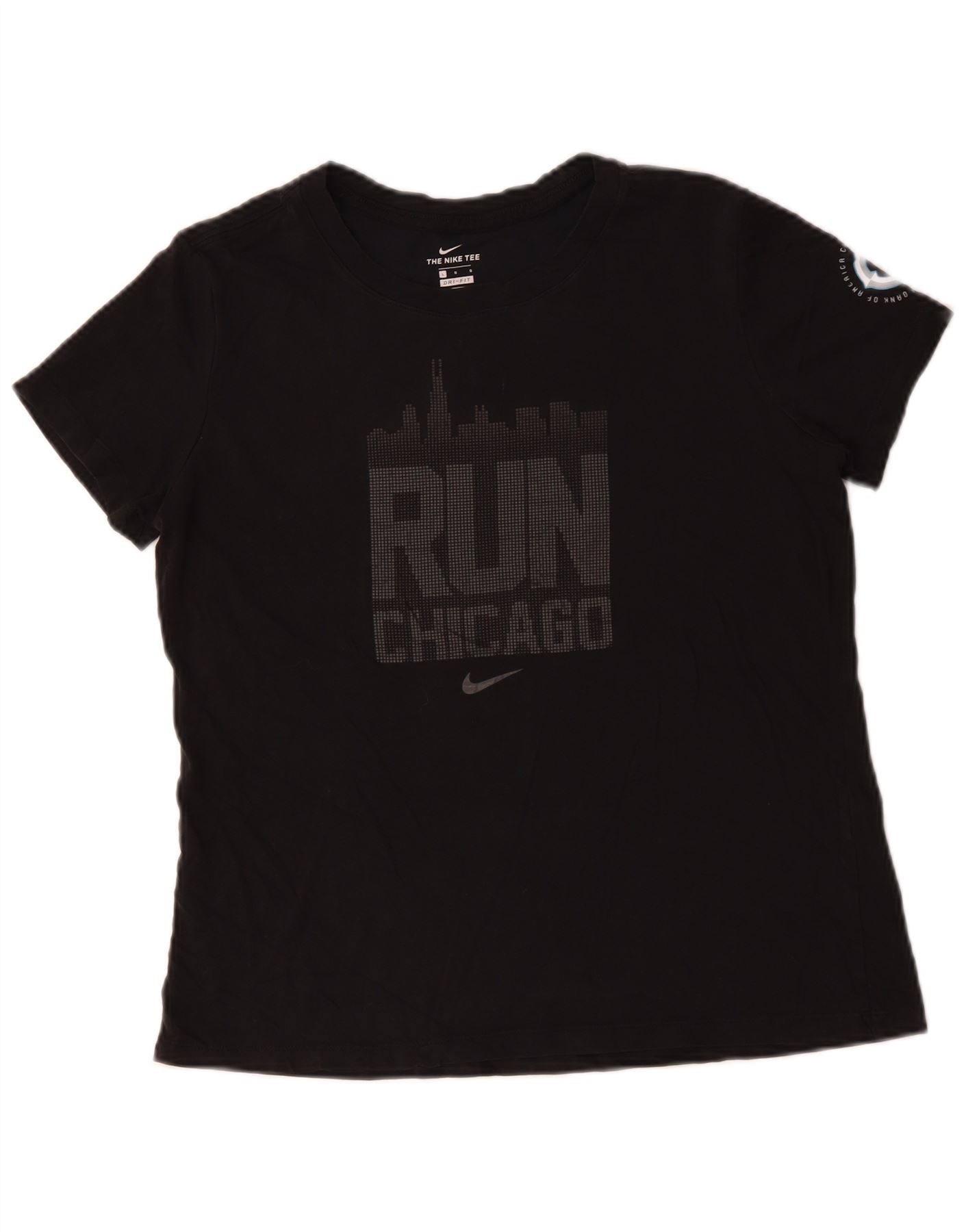 Home > Женский > Депоп Одежда > Женская футболка NIKE Dri Fit с рисунком, топ UK 16, большой размер, черный хлопок