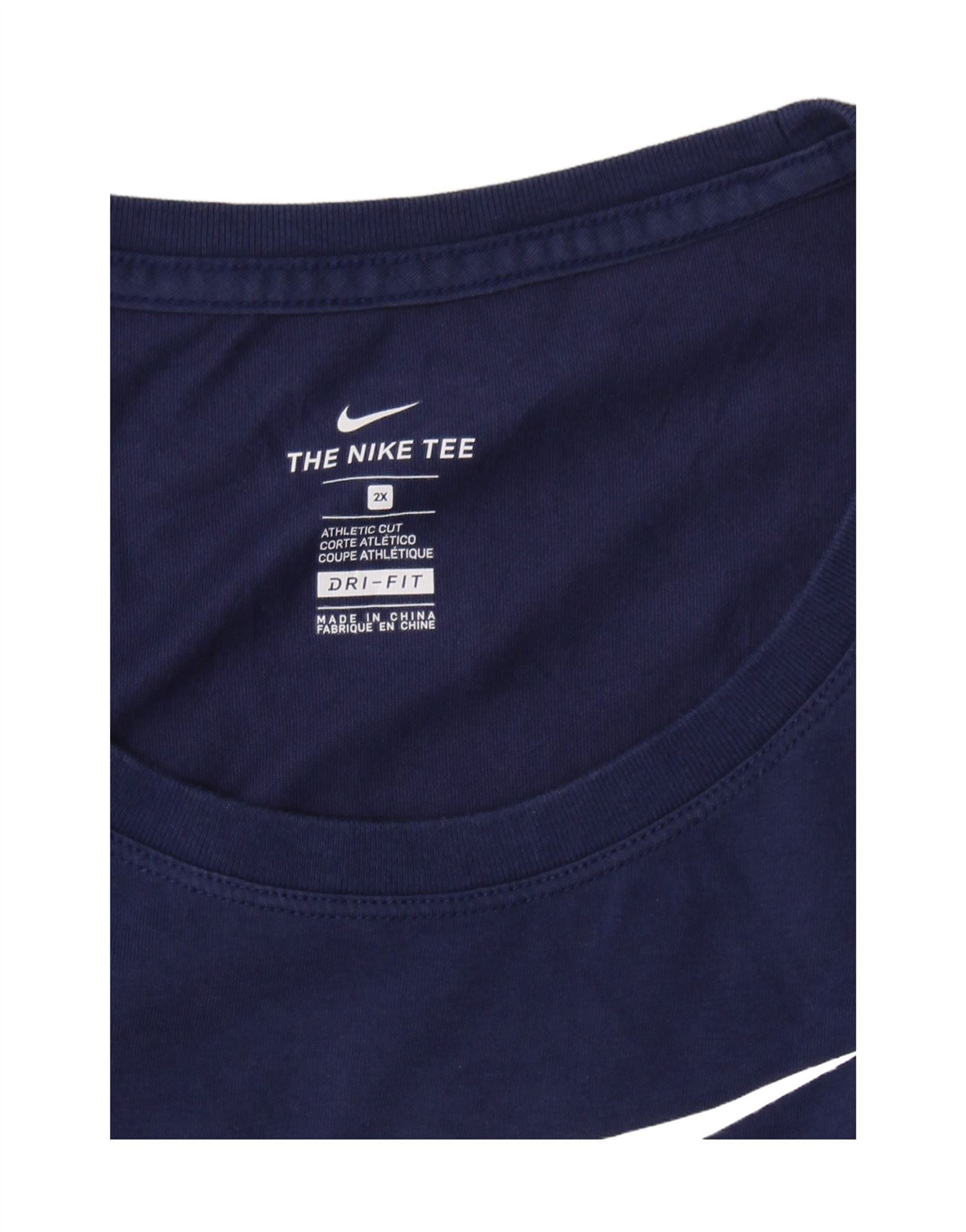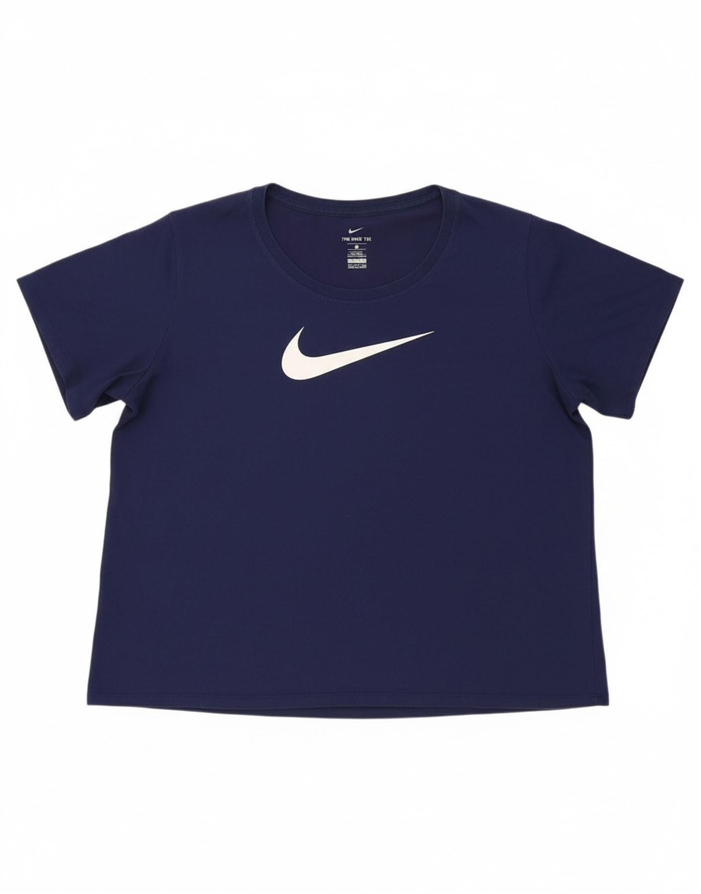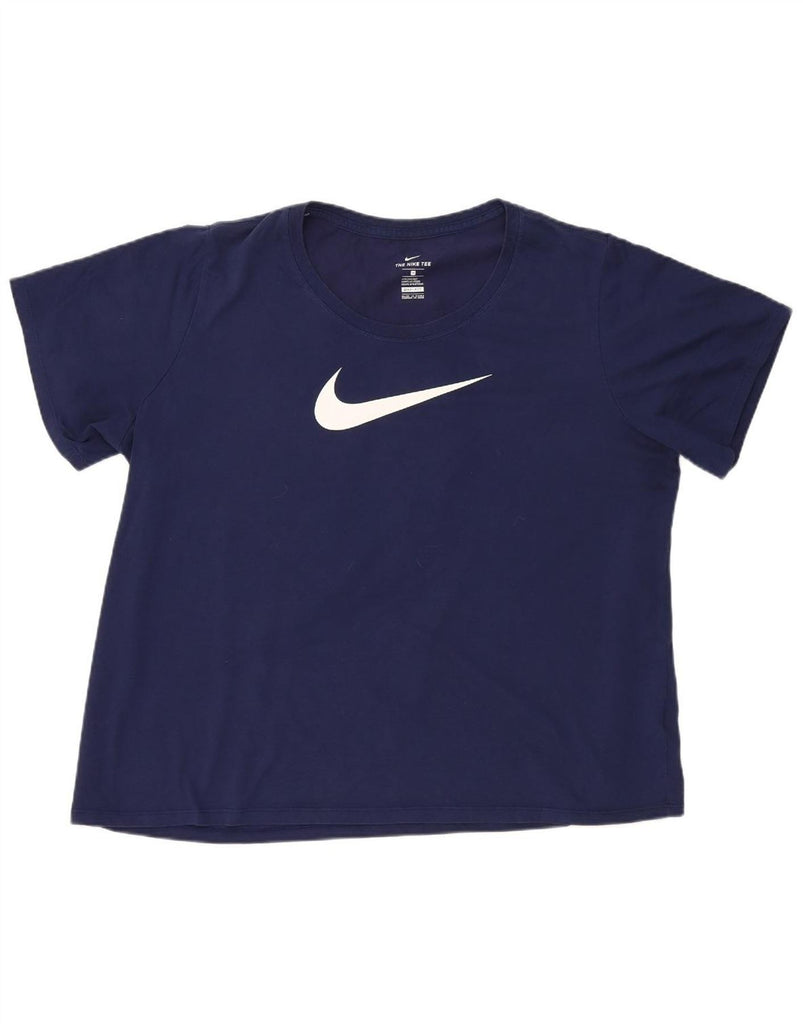 NIKE Womens Dri Fit Graphic T-Shirt Top UK 20 2XL Navy Blue Cotton