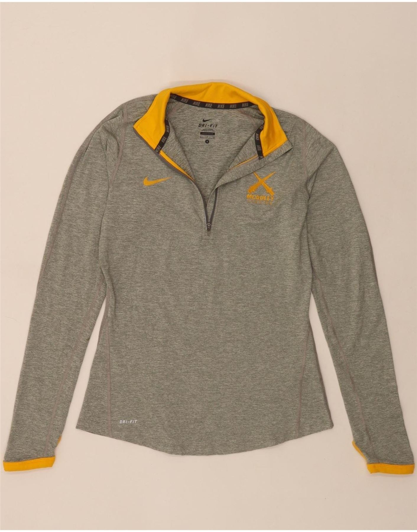 NIKE Womens Dri Fit Pullover Tracksuit Top UK 10 Small Khaki Flecked