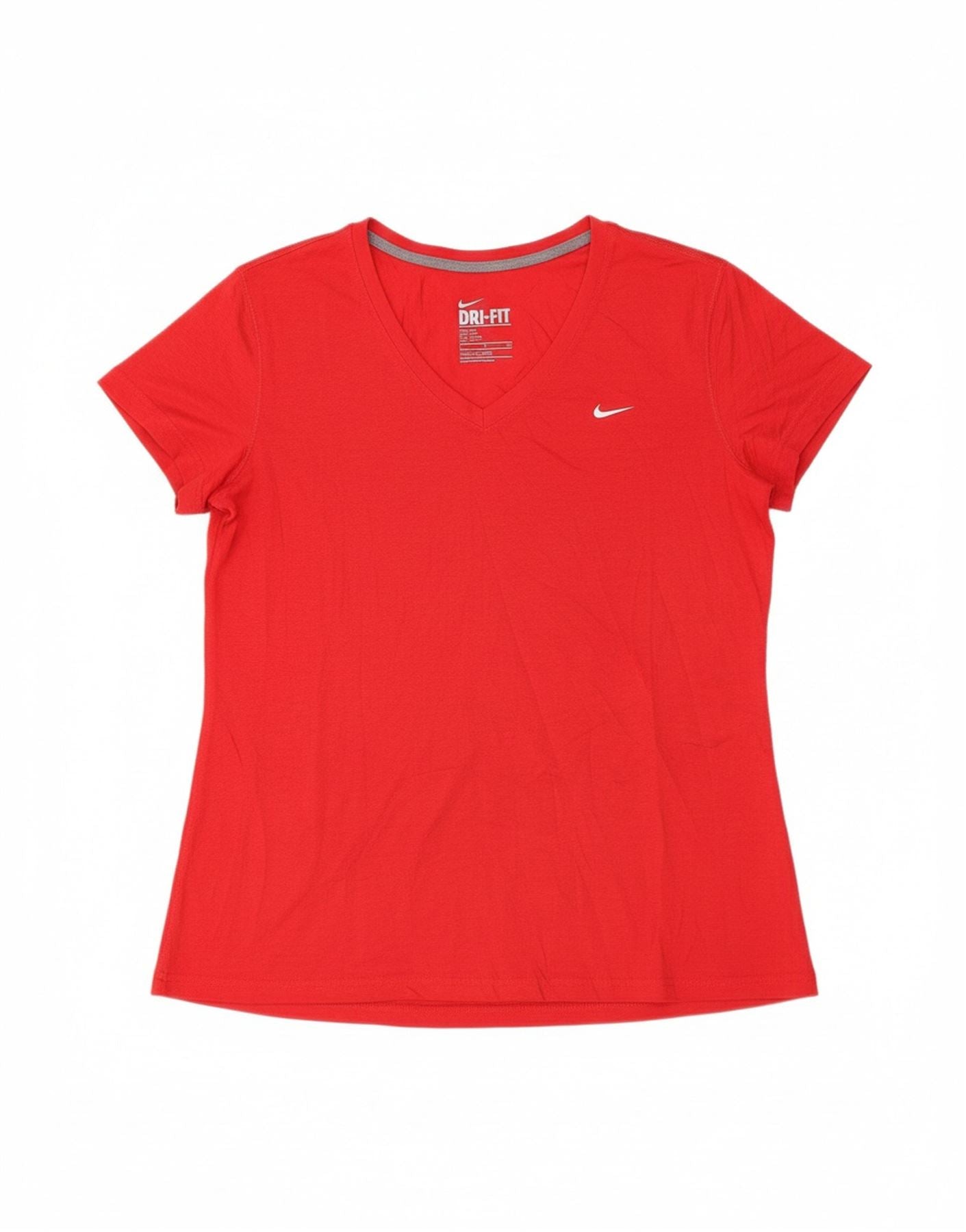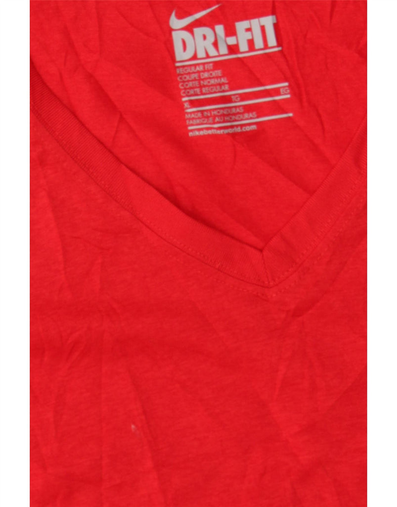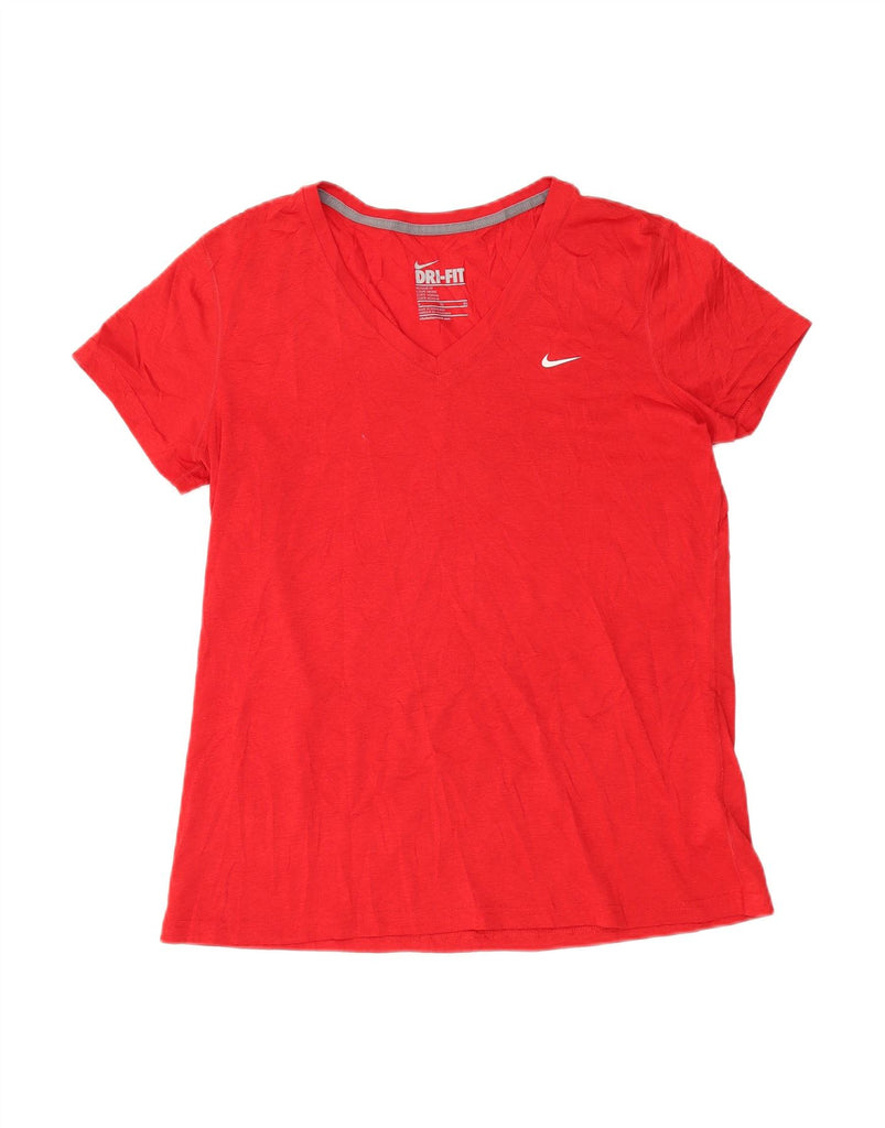 NIKE Womens Dri Fit Regular Fit T-Shirt Top UK 18 XL Red Polyester