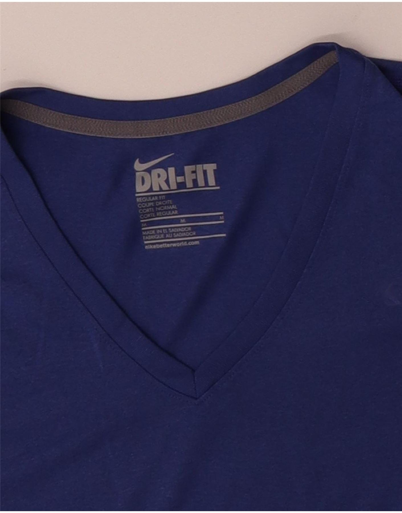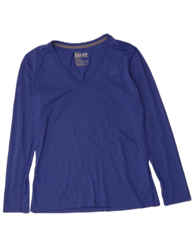 NIKE Womens Dri Fit Regular Fit Top Long Sleeve UK 14 Medium Blue