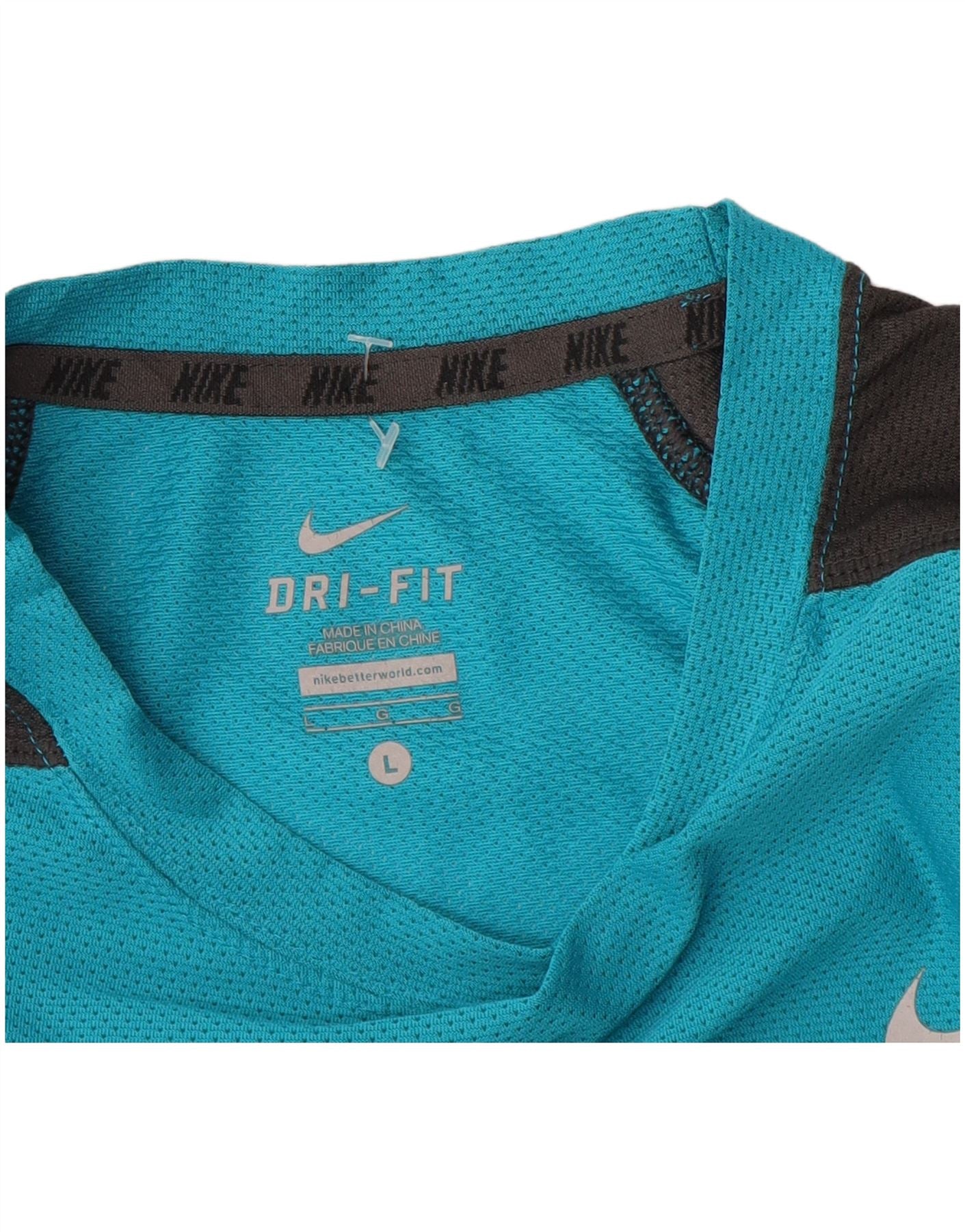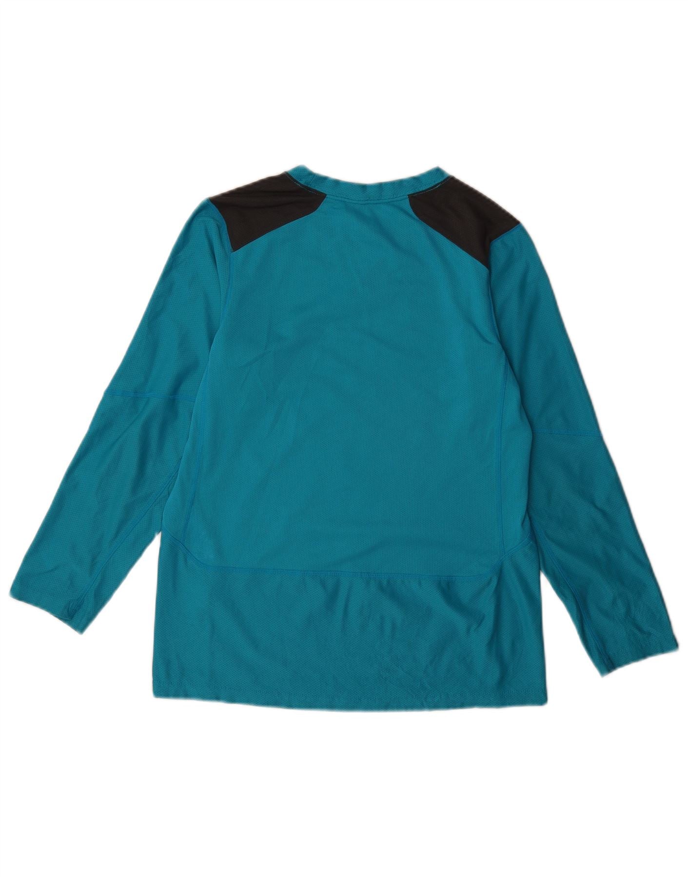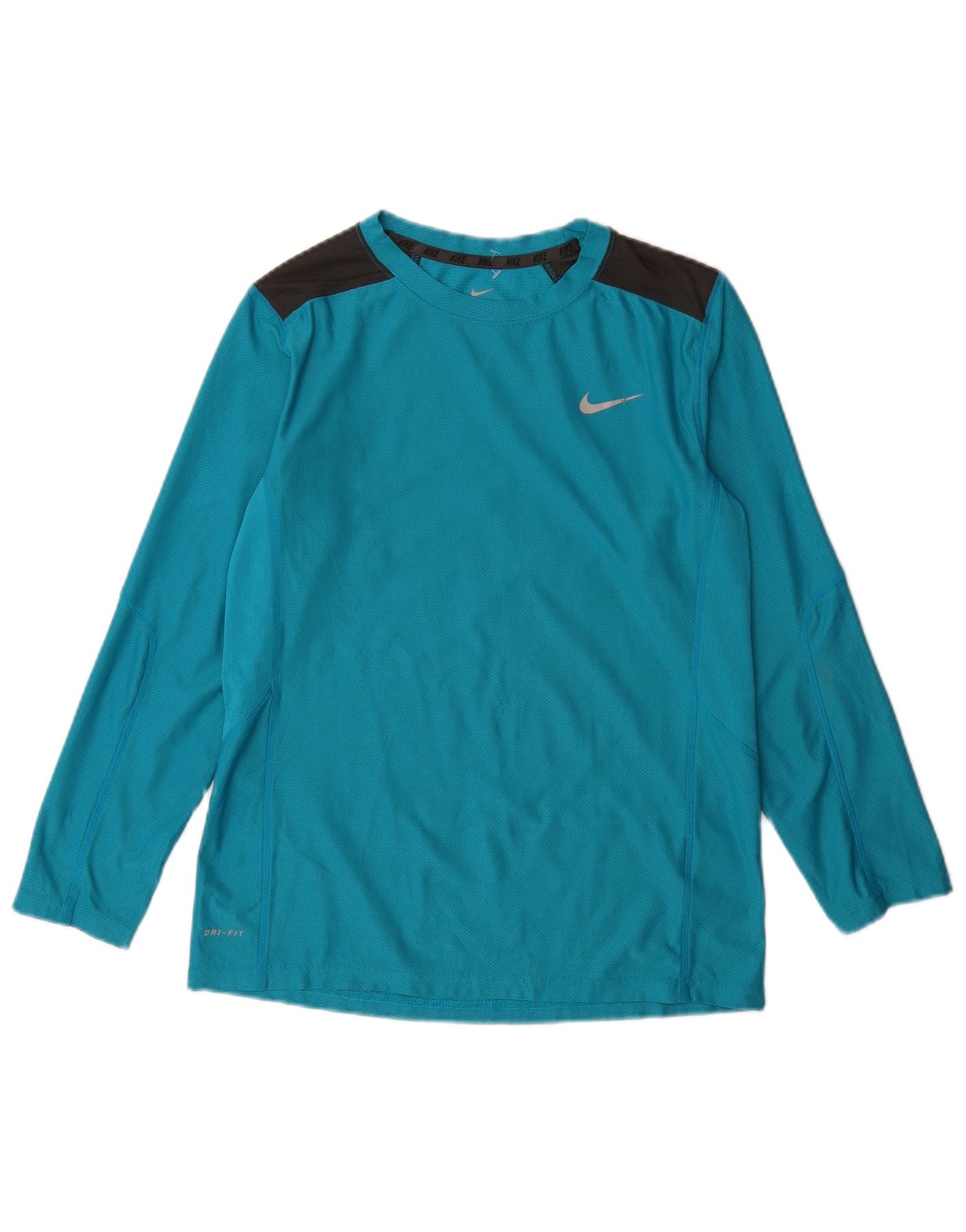 NIKE Womens Dri Fit Top Long Sleeve UK 14 Large Blue Colourblock Polyester