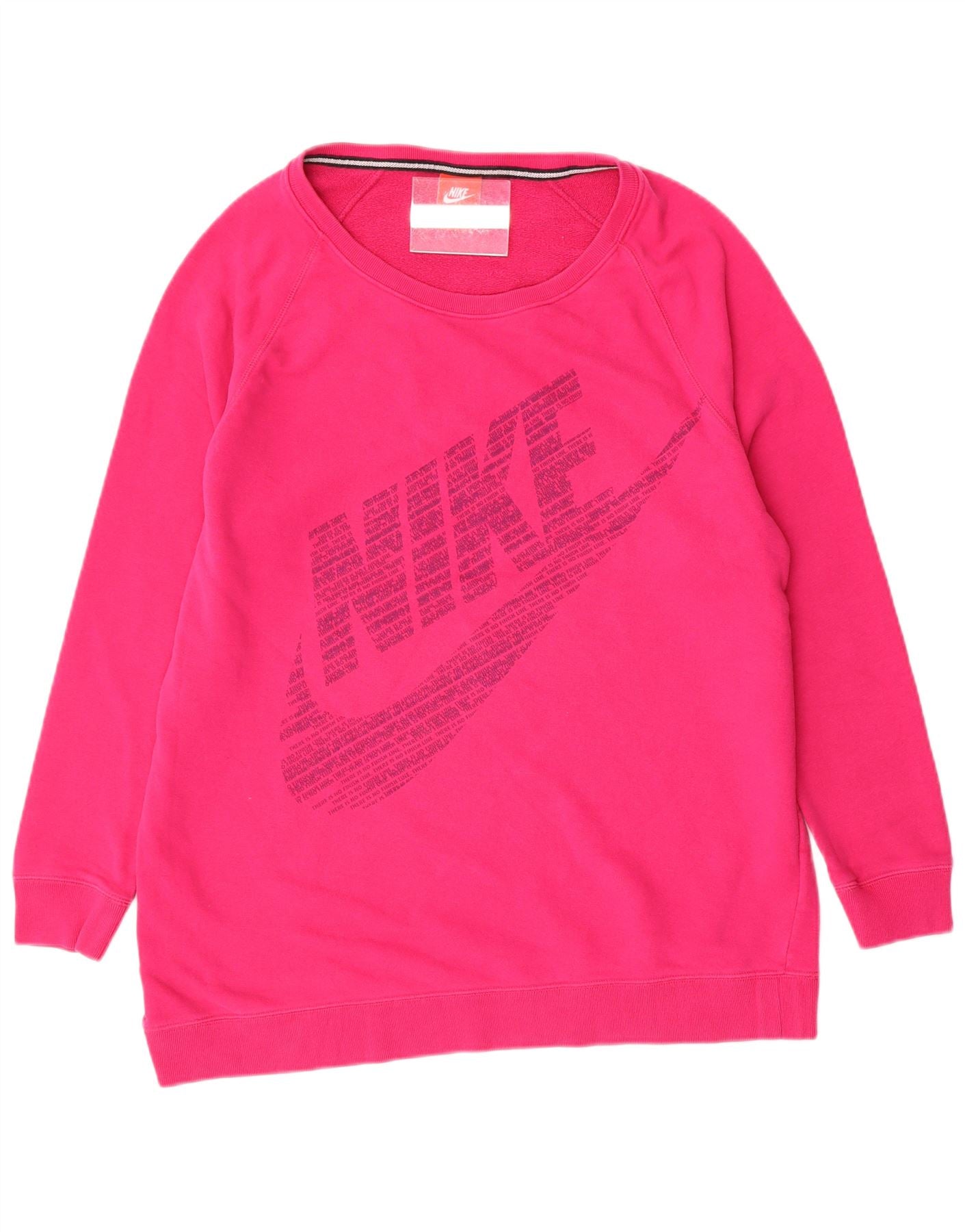 NIKE Womens Grant Fit Graphic Sweatshirt Jumper UK 16 Large Pink Cotton