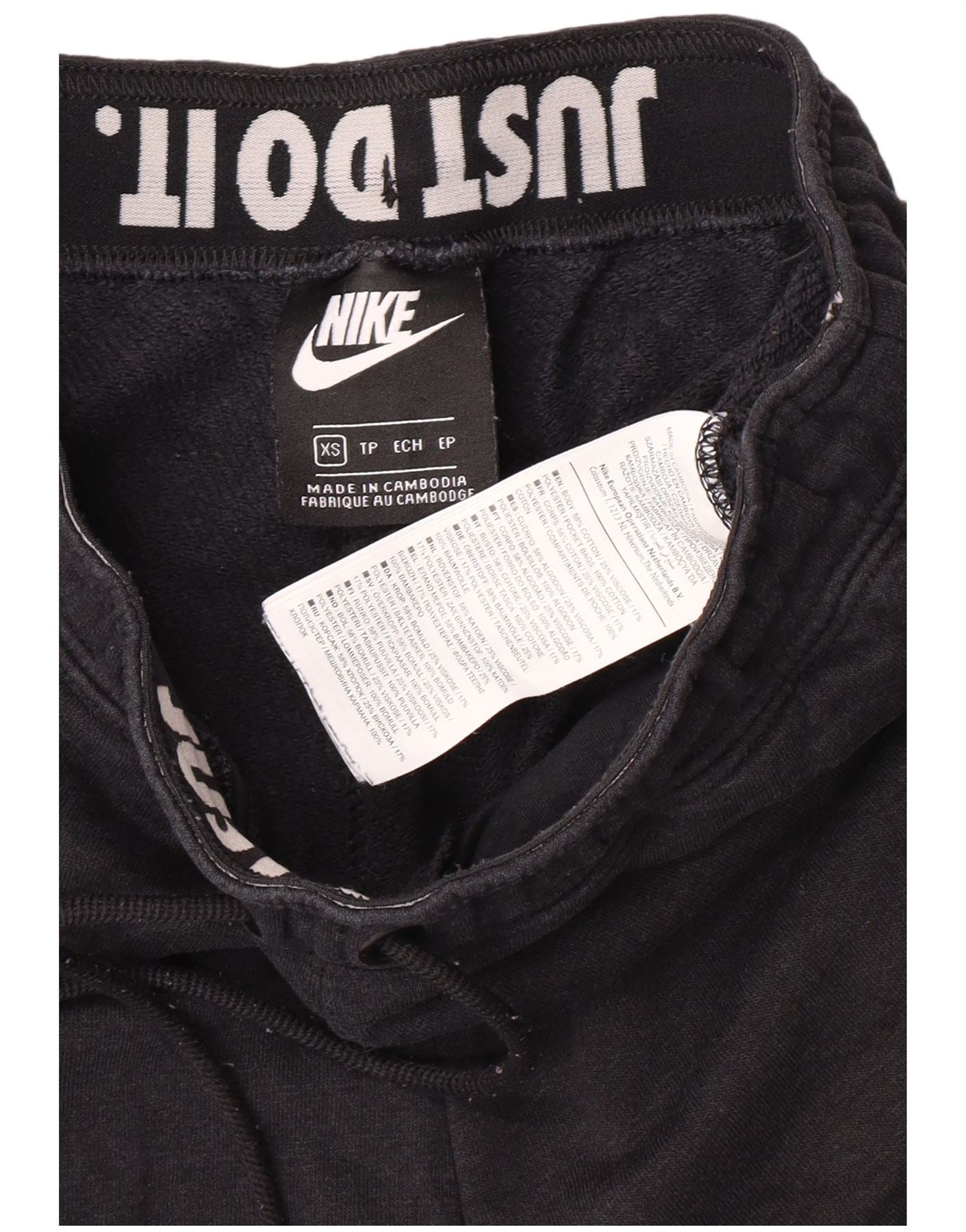 - Описание ИИ: Эти женские джоггеры Nike изготовлены из мягкой трикотажной ткани, состоящей из хлопка, полиэстера и вискозы. Они имеют свободный крой, эластичный пояс и шнурок для комфорта. Черный цвет подчеркнут ярким белым графическим логотипом на штанине и надписью «Just Do It» на поясе. Карманы добавляют практичности этим брюкам в спортивном стиле.
