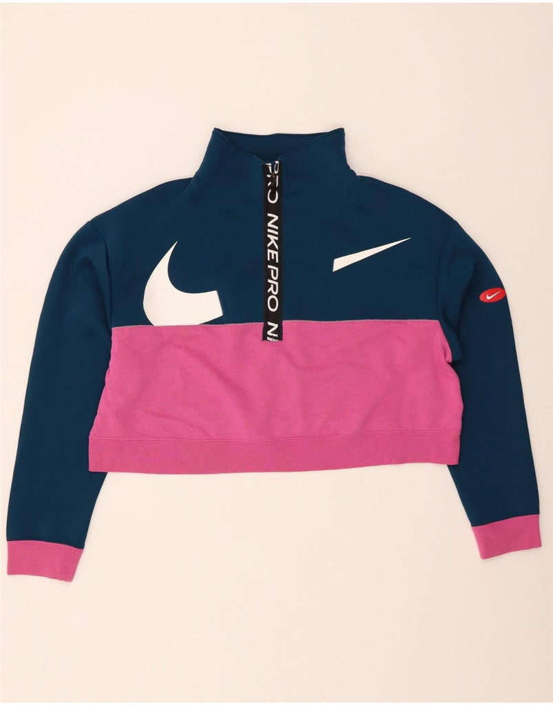 NIKE Womens Oversized Graphic Sweatshirt Jumper UK 14 Medium Navy Blue