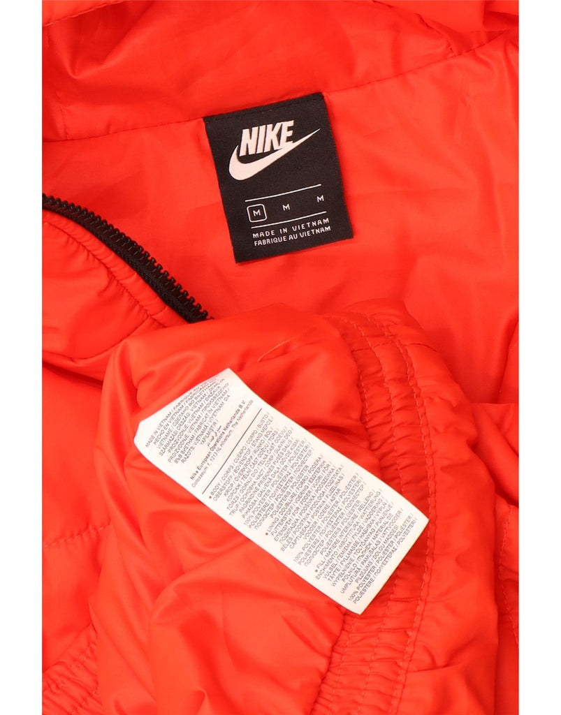 NIKE Womens Oversized Hooded Padded Jacket UK 14 Medium Red Polyester