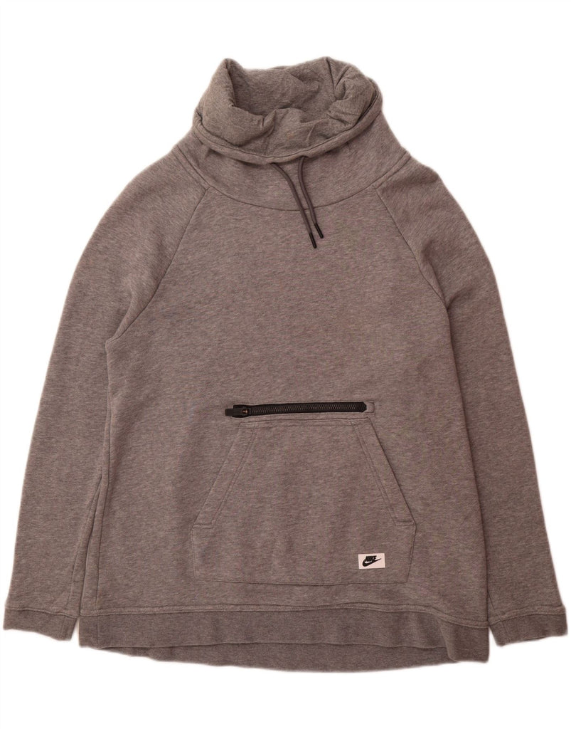 NIKE Womens Roll Neck Sweatshirt Jumper UK 10 Small Grey Cotton