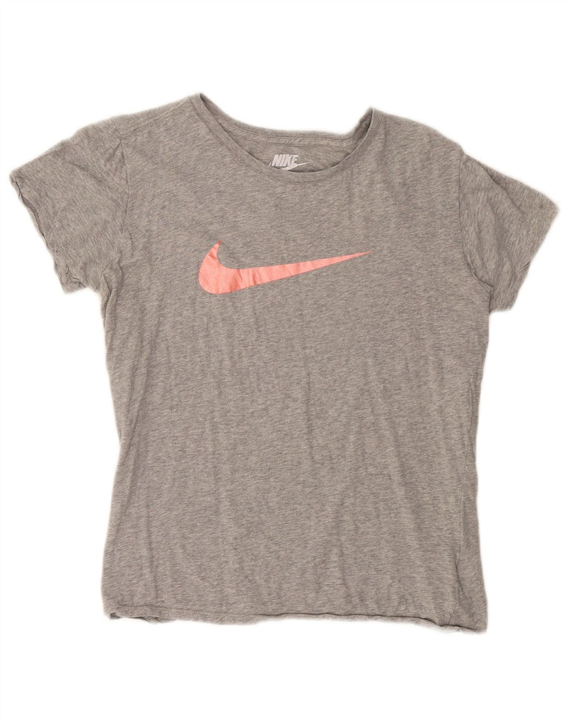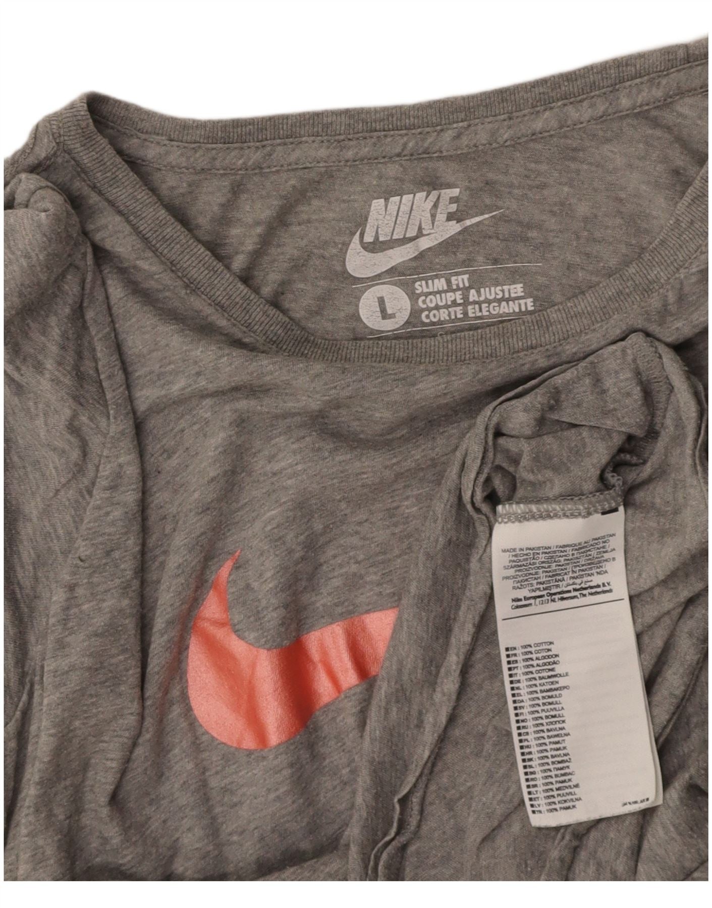 NIKE Womens Slim Fit Graphic T-Shirt Top UK 14 Large Grey Cotton