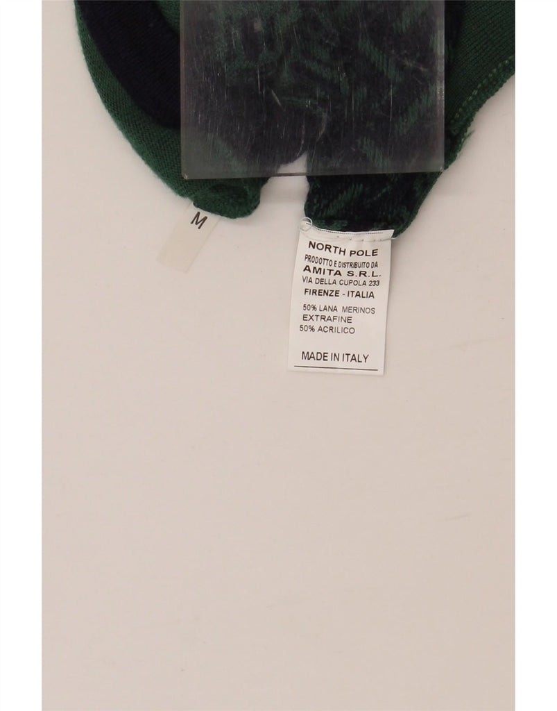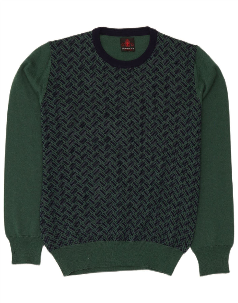 Мужской джемпер с круглым вырезом NORTH POLE, средний зеленый шерстяной свитер с геометрическим рисунком