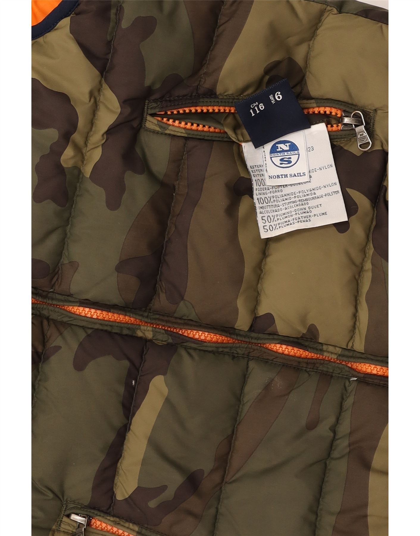 NORTH SAILS Boys Reversible Padded Gilet 5-6 Years Khaki Camouflage