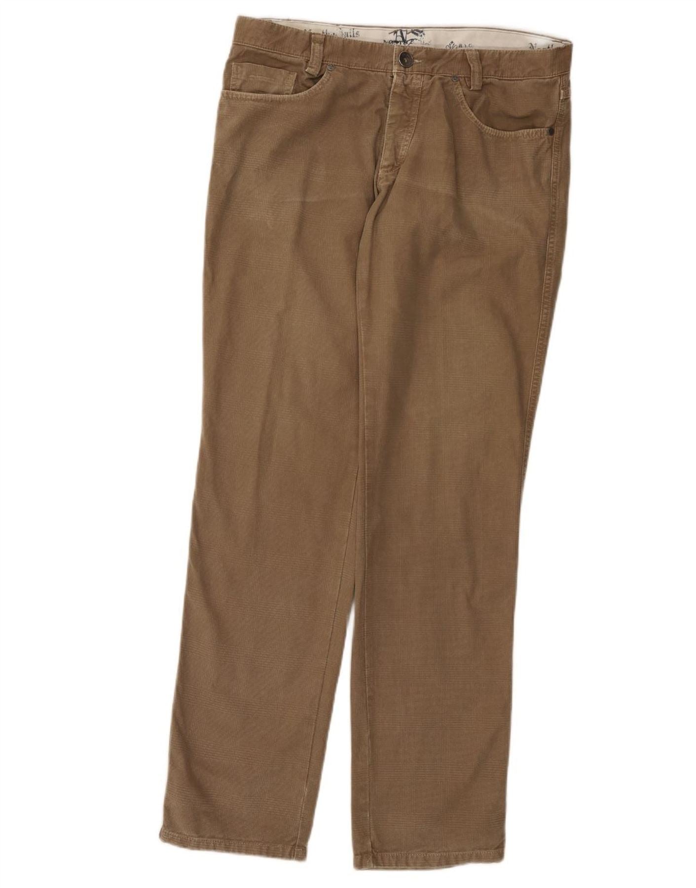 NORTH SAILS Mens Straight Casual Trousers IT 52 XL W34 L34 Brown Check