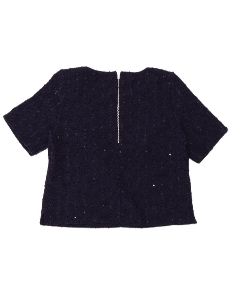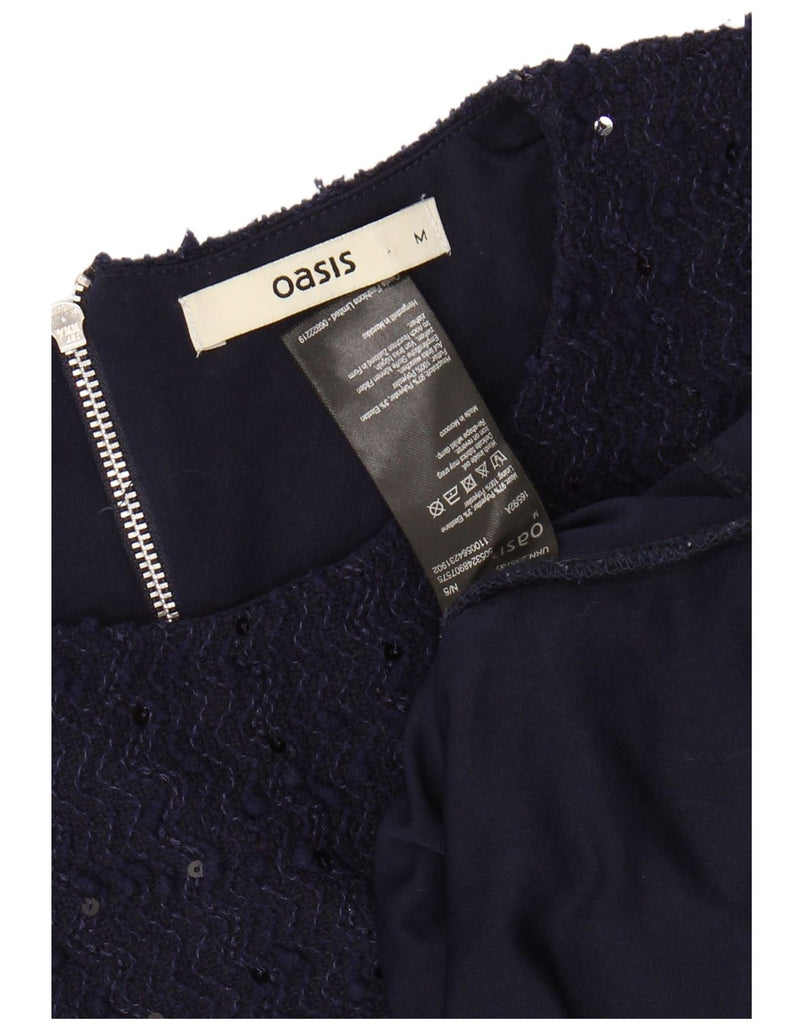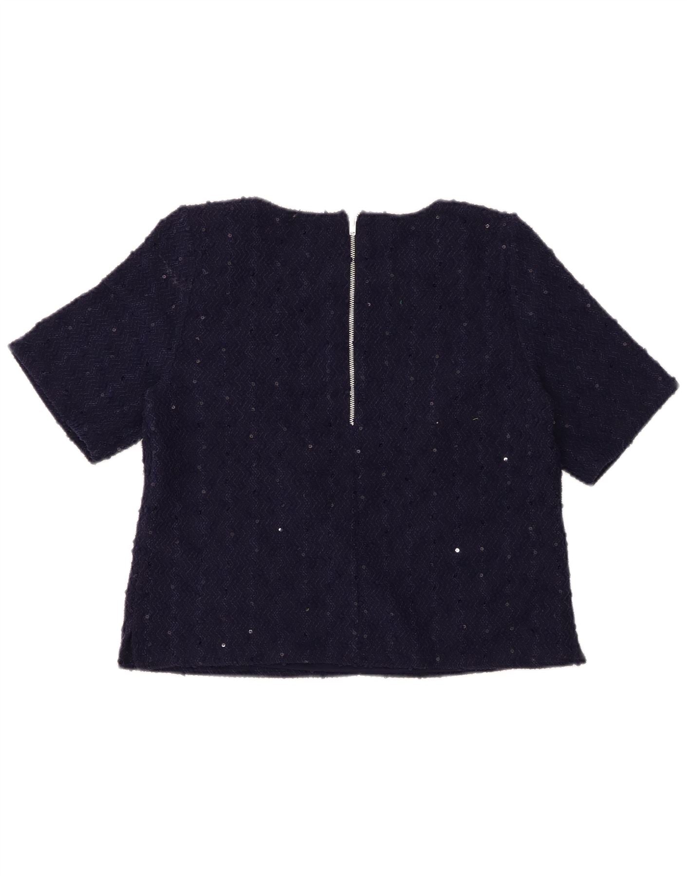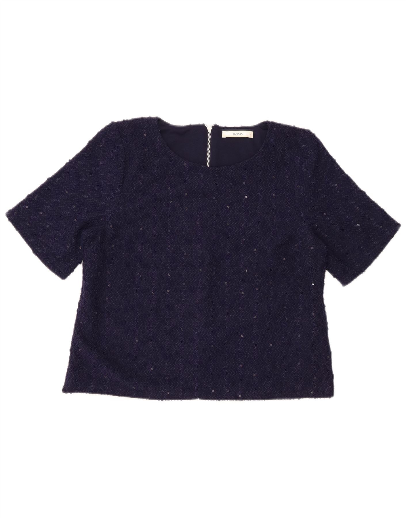 OASIS Womens Crop Blouse Top UK 14 Medium Navy Blue Chevron Polyester