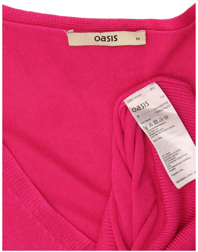 OASIS Womens Longline V-Neck Jumper Sweater UK 12 Medium Pink Viscose