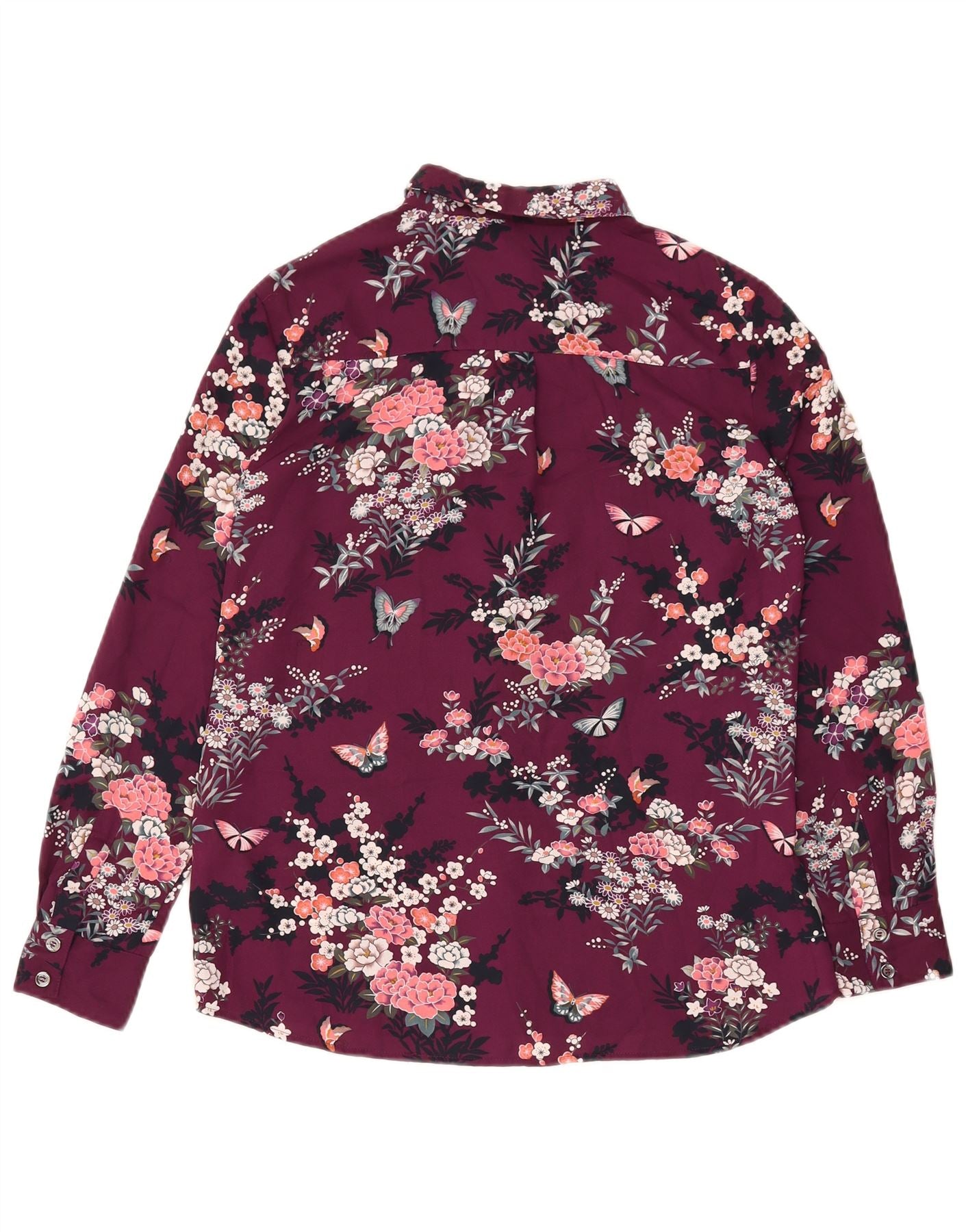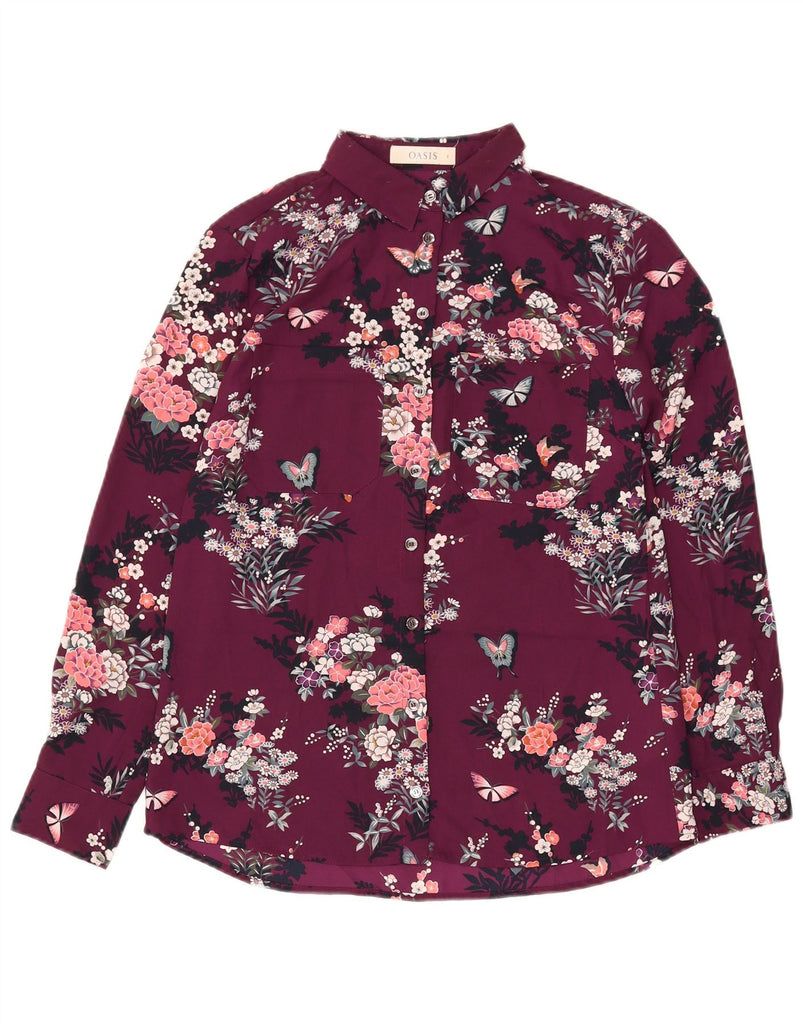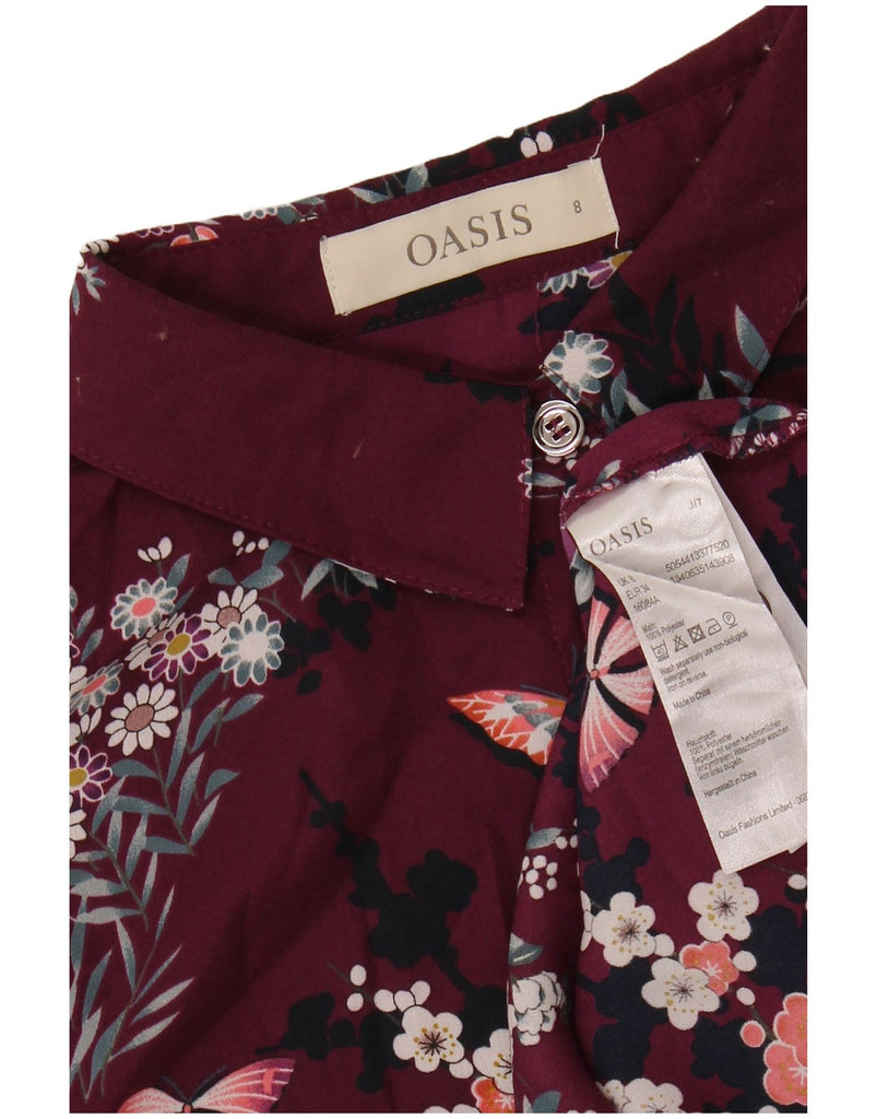 OASIS Womens Shirt Blouse UK 8 Small Burgundy Floral Polyester