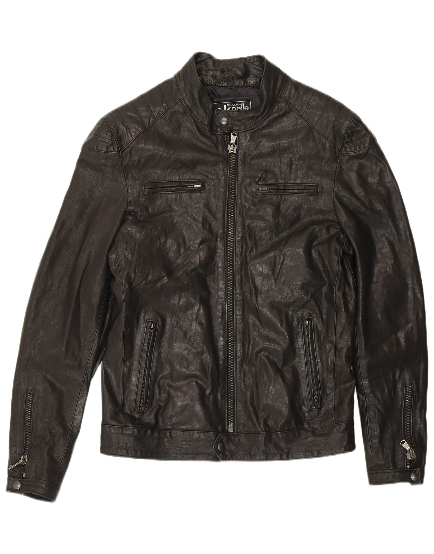 Мужская кожаная куртка-бомбер OK PELLE UK 36 маленькая черная кожаная