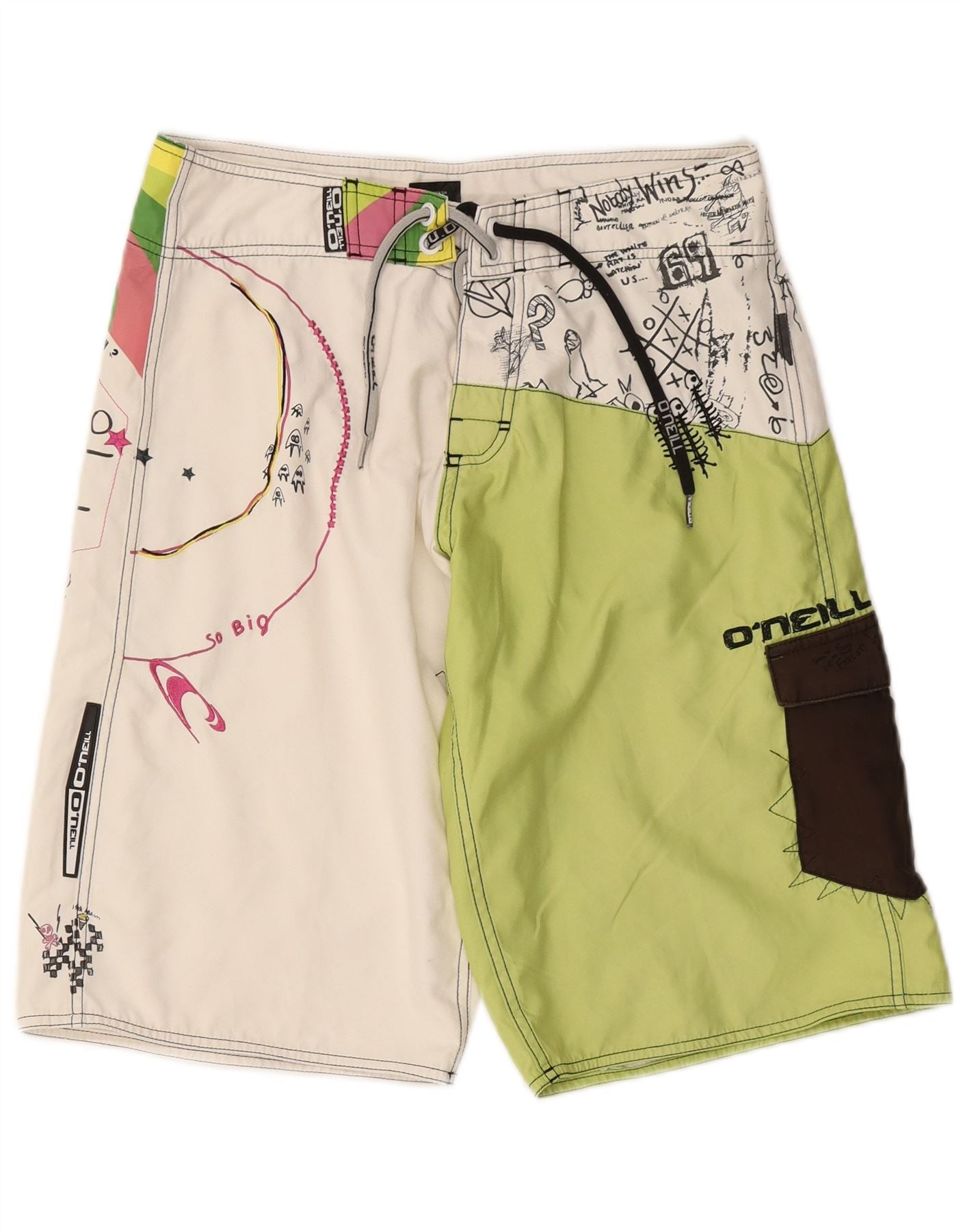 O'NEILL Boys Graphic Swimming Shorts 15-16 Years White Colourblock