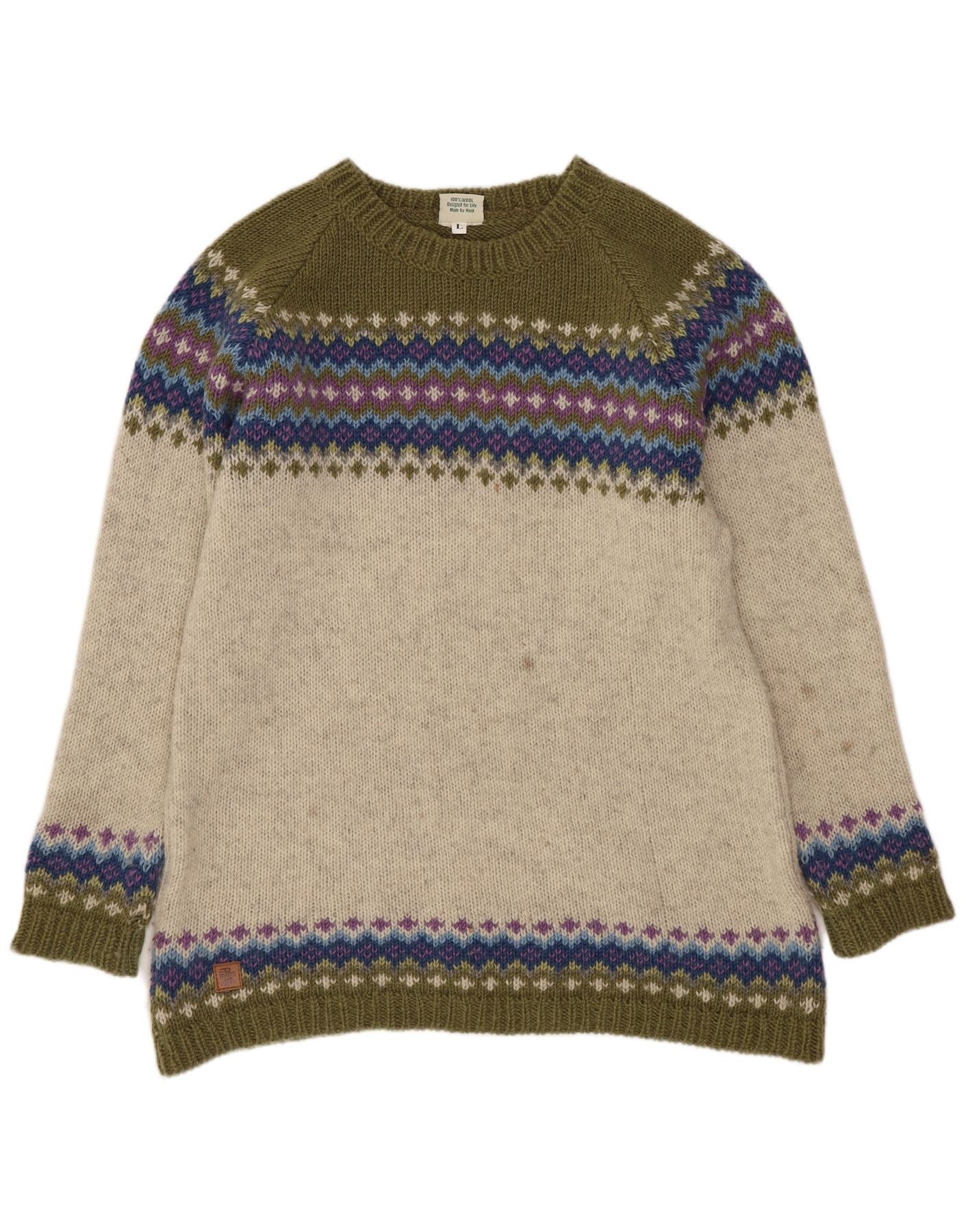- Описание ИИ: Женский джемпер с круглым вырезом Pachamama изготовлен из 100-процентной шерсти с теплой и мягкой трикотажной текстурой. Имеет классический круглый вырез и длинные рукава. Дизайн пуловера обеспечивает удобство ношения. Характерный разноцветный узор Fair Isle украшает кокетку и манжеты, добавляя традиционные геометрические детали. Регулярная посадка обеспечивает удобство ношения и делает ее вечным дополнением гардероба.