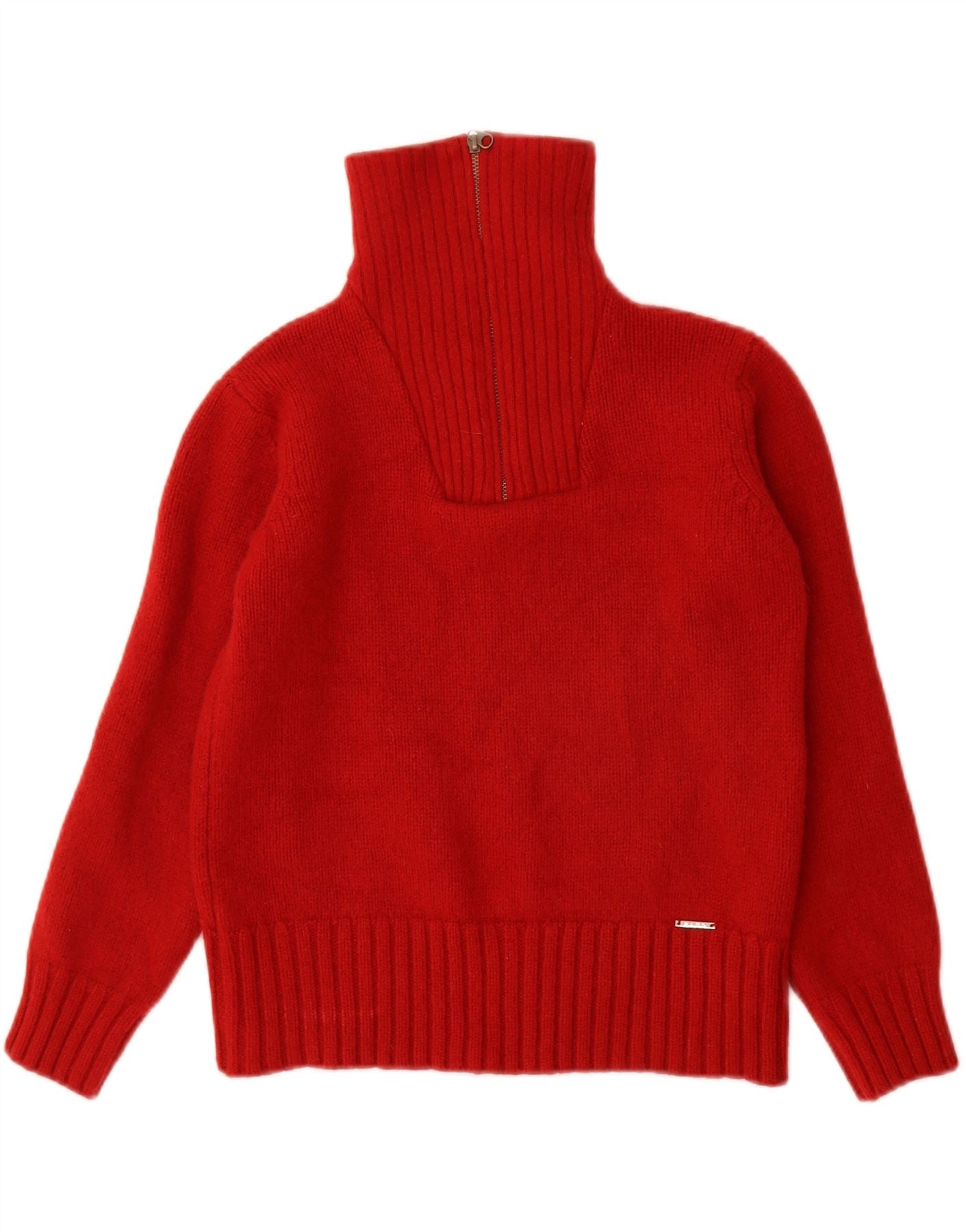 Женский свитер PACO с воротником на молнии UK 12, средний красный из овечьей шерсти