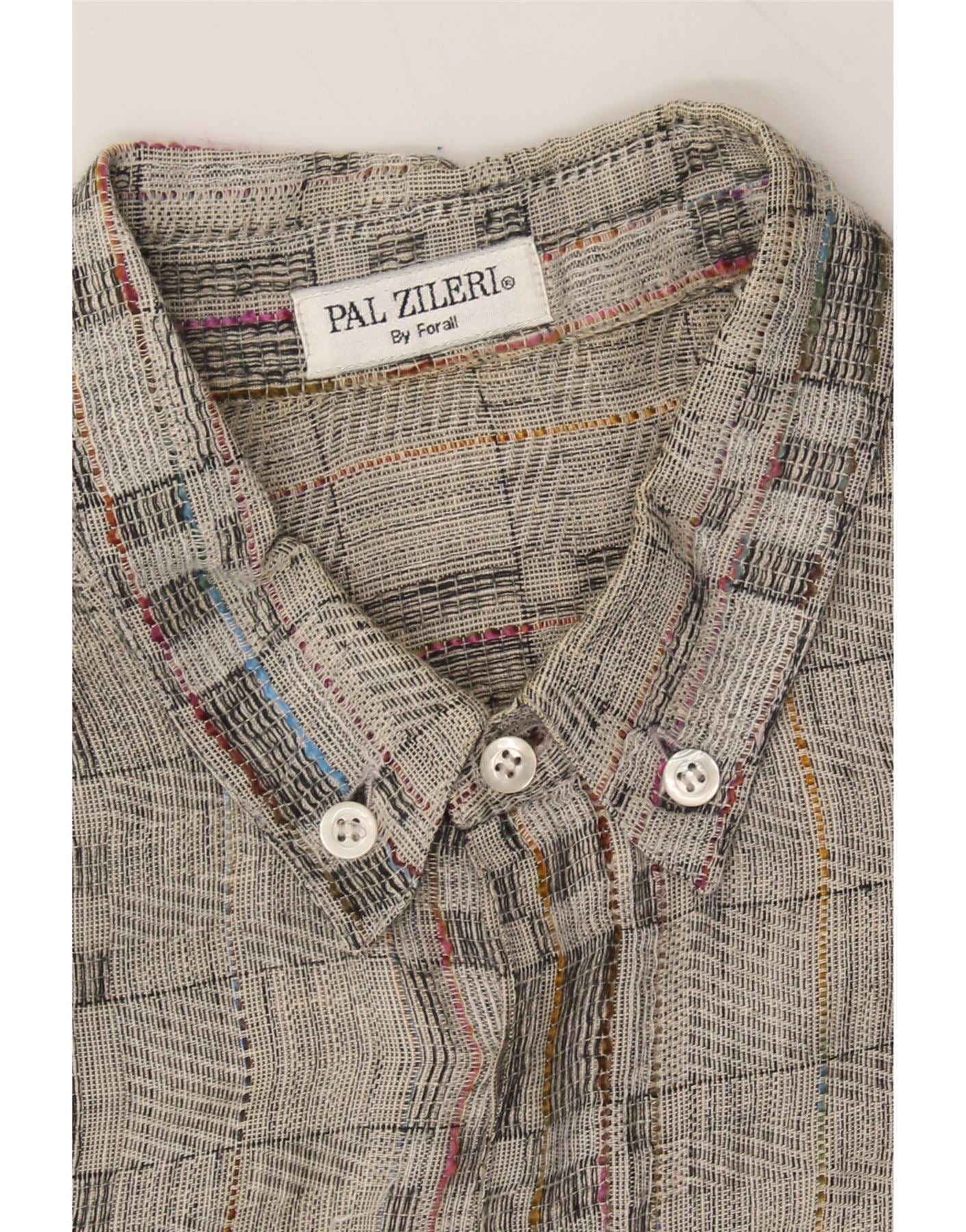 PAL ZILERI Mens Short Sleeve Shirt EU 48 2XL Grey Check Viscose
