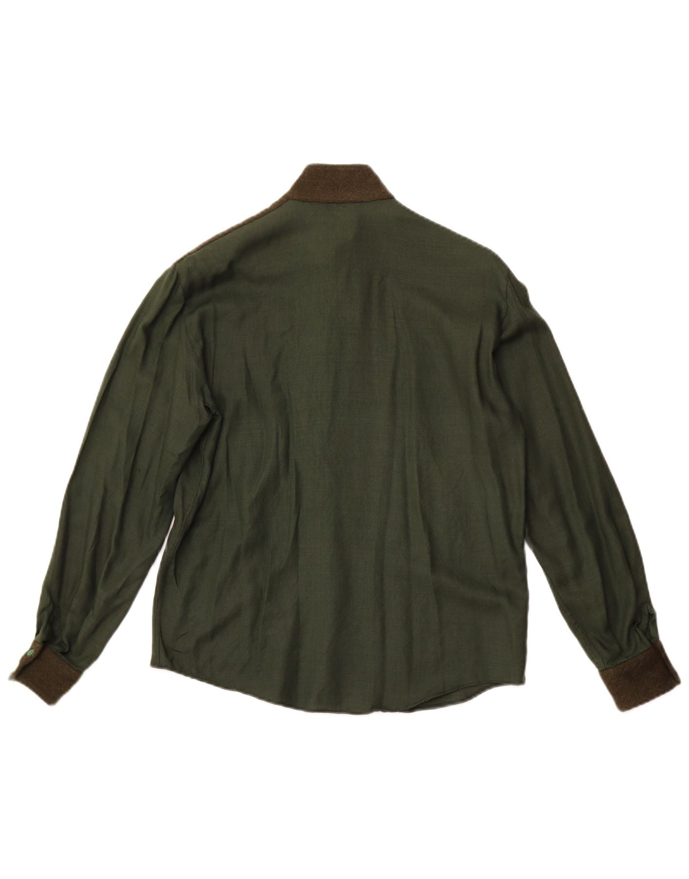 Женская блузка-рубашка в стиле милитари PANCALDI & B UK 14, средний зеленый цвет с цветными блоками