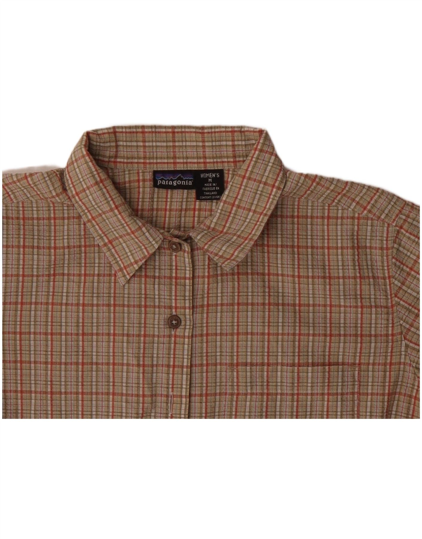 PATAGONIA Womens Short Sleeve Shirt UK 14 Medium Beige Check