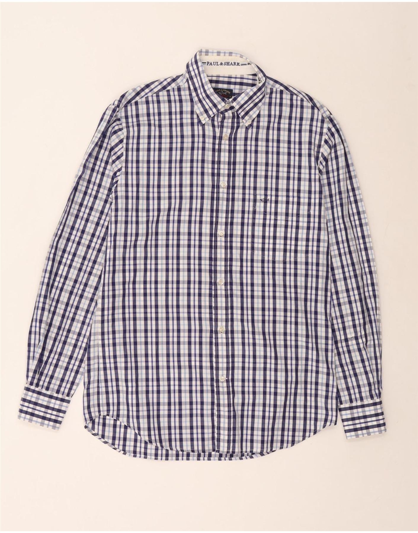 Мужская рубашка в клетку Paul & Shark, хлопковая синяя клетка среднего размера