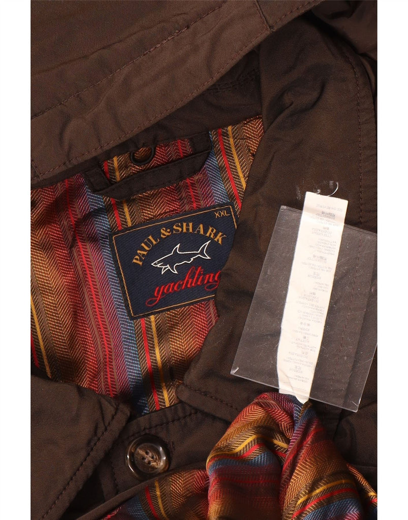 PAUL & SHARK Mens Hooded Utility Jacket UK 44 2XL Brown Nylon