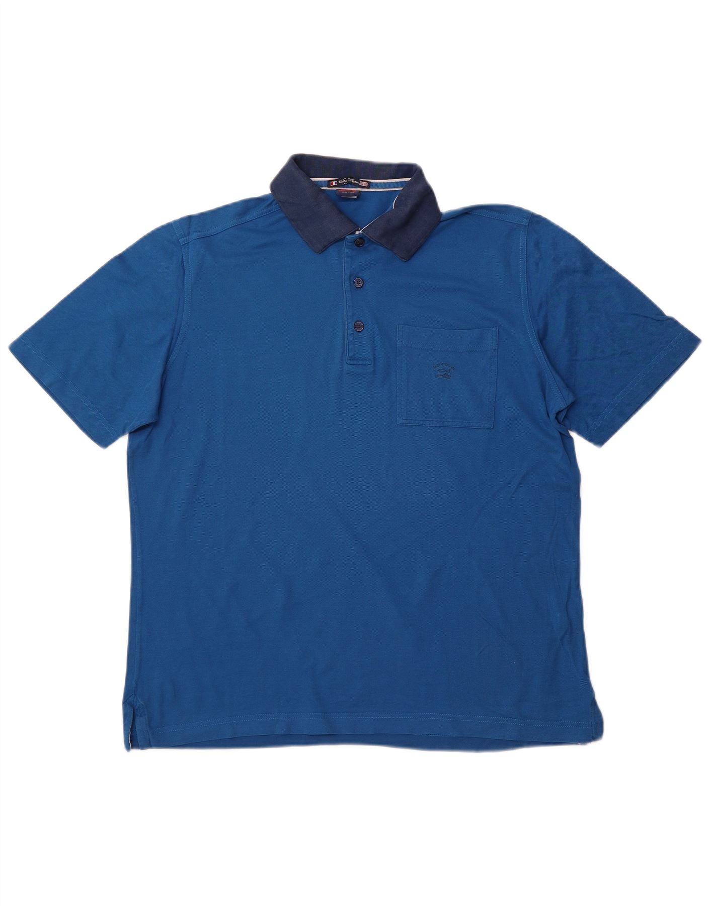 Мужская рубашка-поло для яхтинга PAUL & SHARK, большая синяя хлопковая ткань