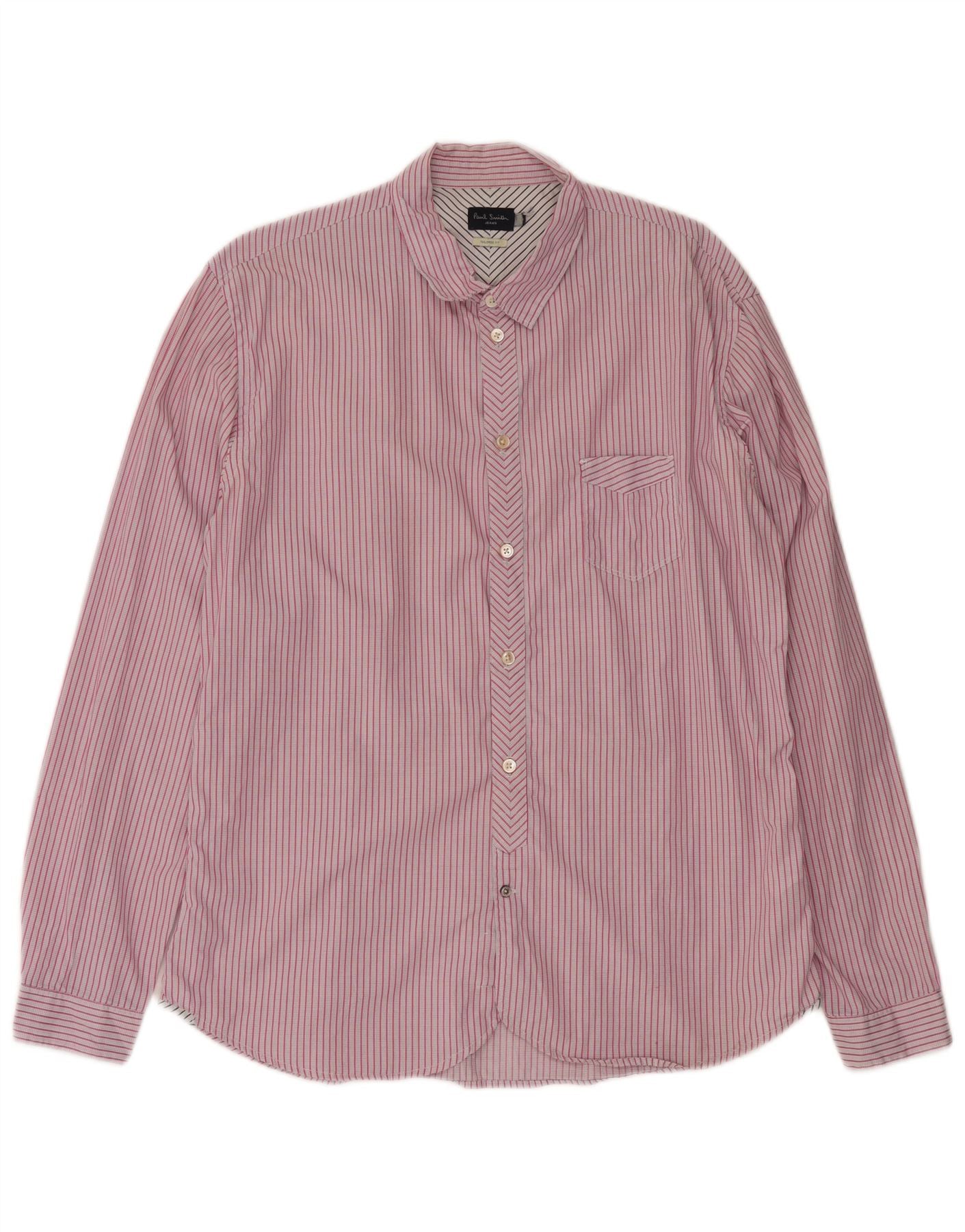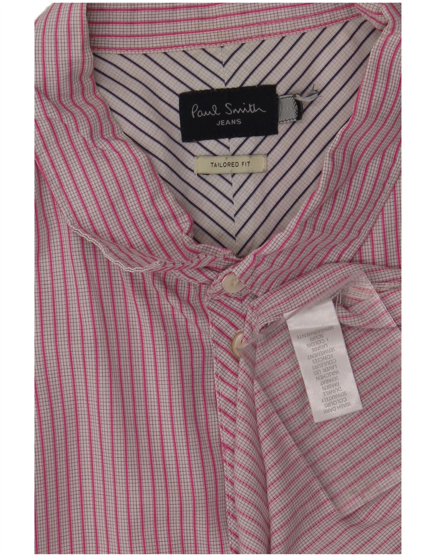 PAUL SMITH Mens Tailored Fit Shirt Medium Pink Pinstripe Cotton