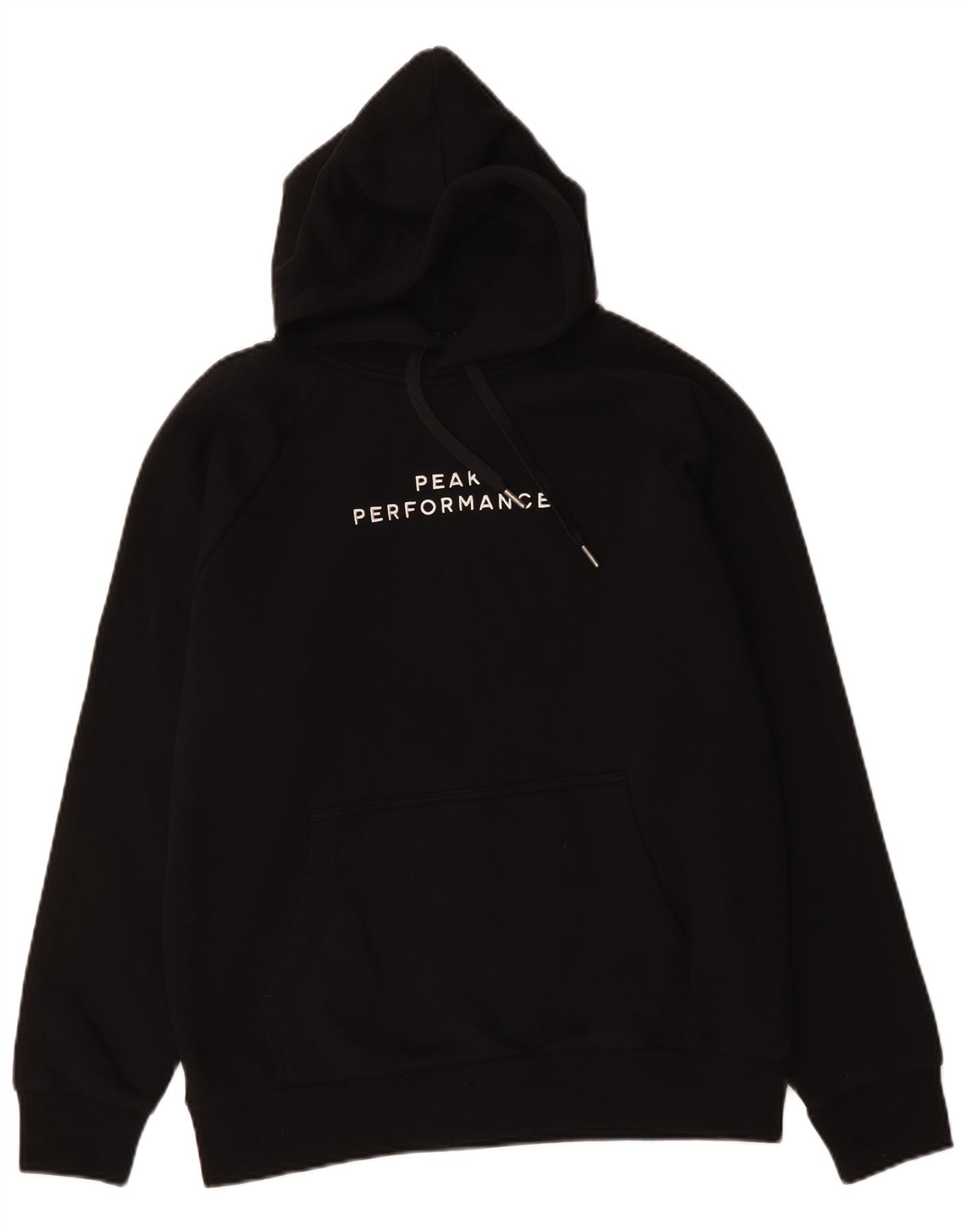 PEAK PERFORMANCE Mens Graphic Hoodie Jumper Large Black Cotton