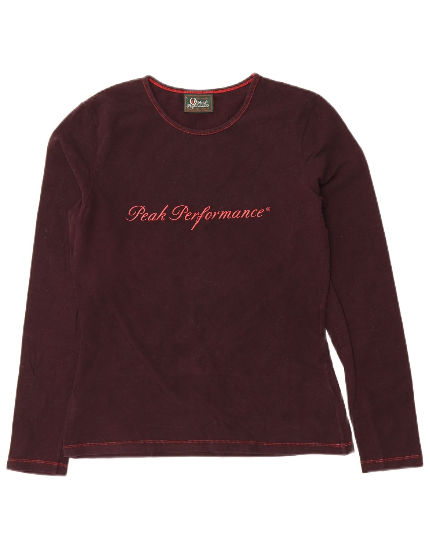 PEAK PERFORMANCE Womens Top Long Sleeve UK 14 Large Maroon Cotton
