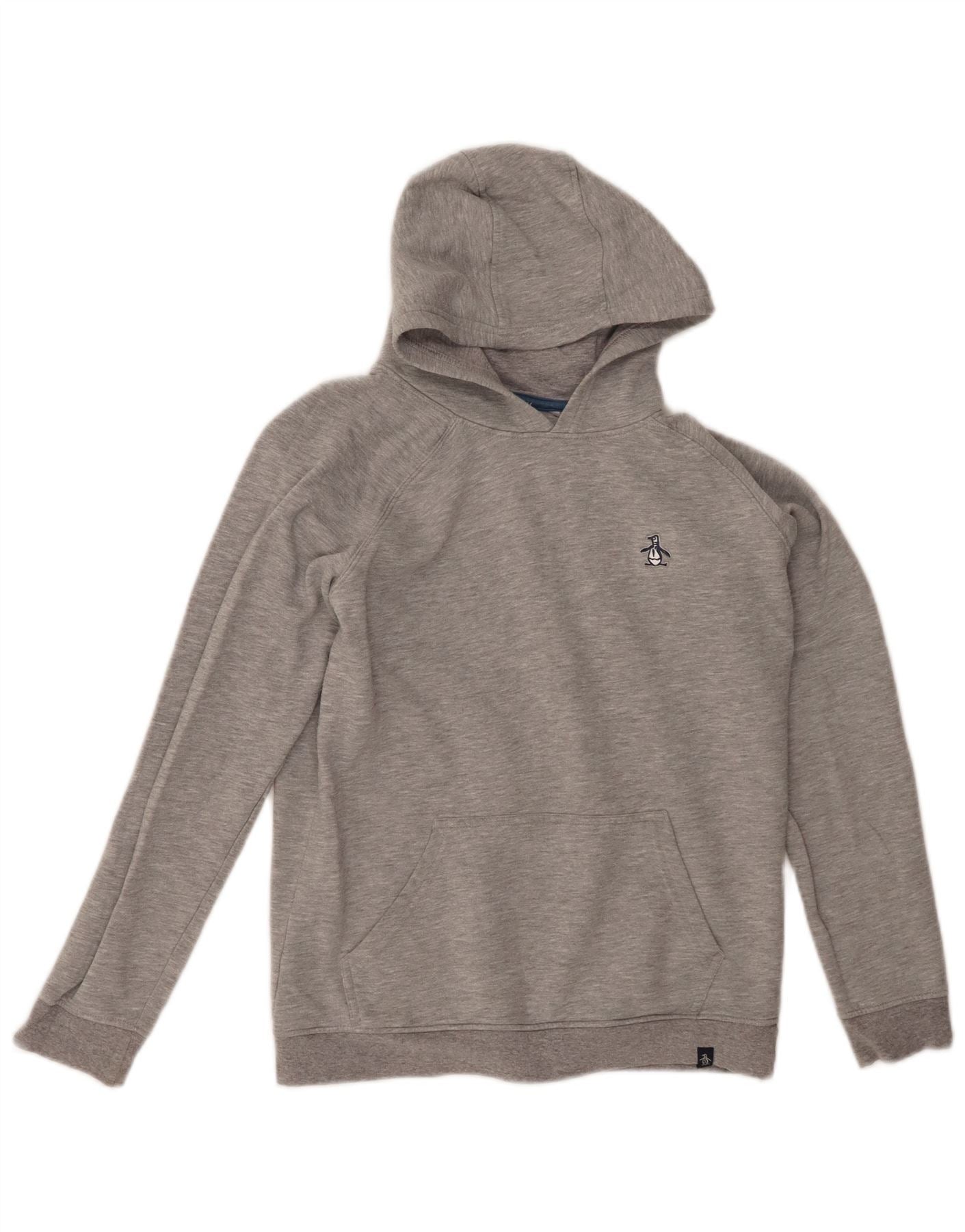 PENGUIN Boys Hoodie Jumper 13-14 Years Medium Grey Flecked Cotton