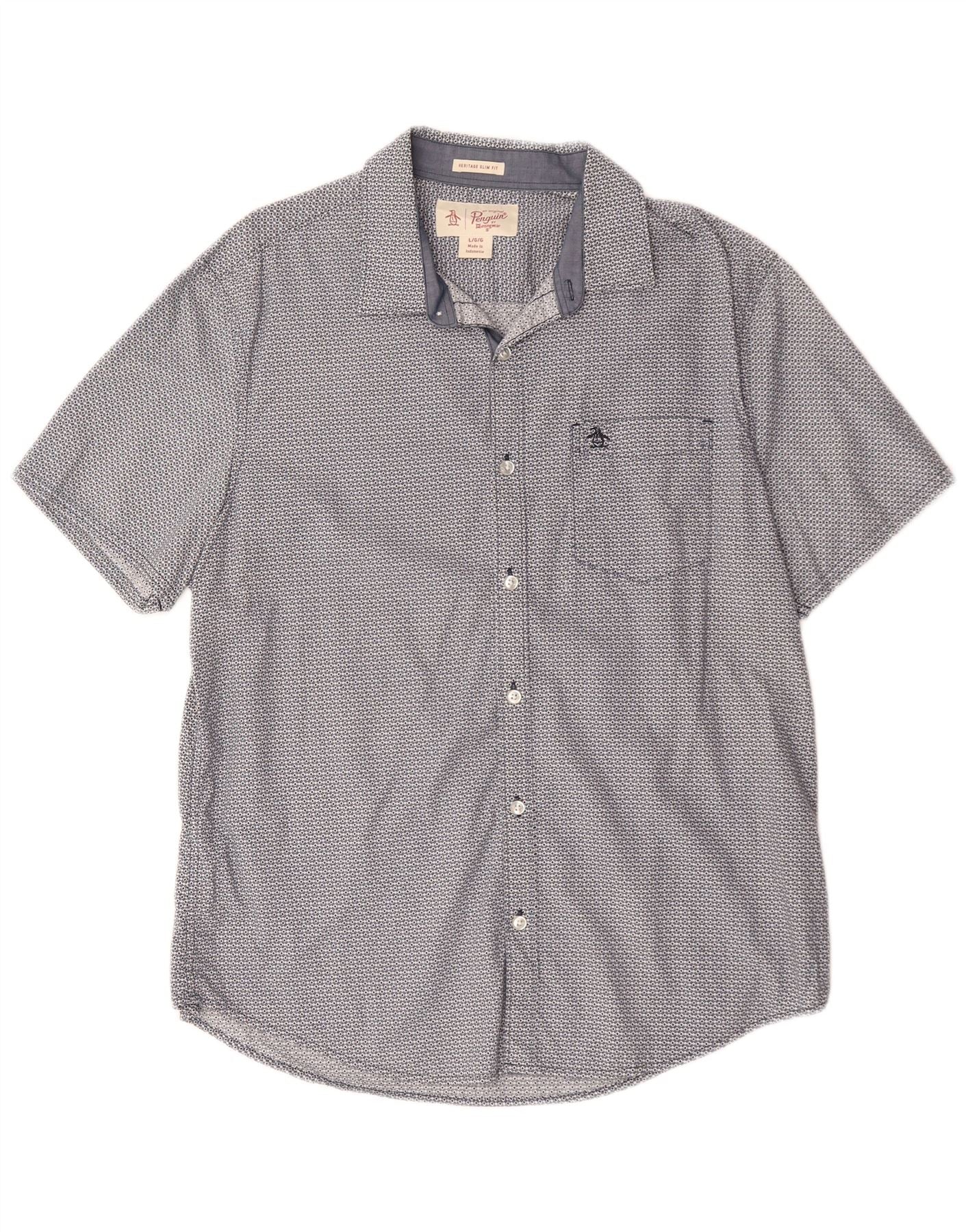 Мужская рубашка узкого кроя с коротким рукавом PENGUIN Heritage, большая синяя с геометрическим узором