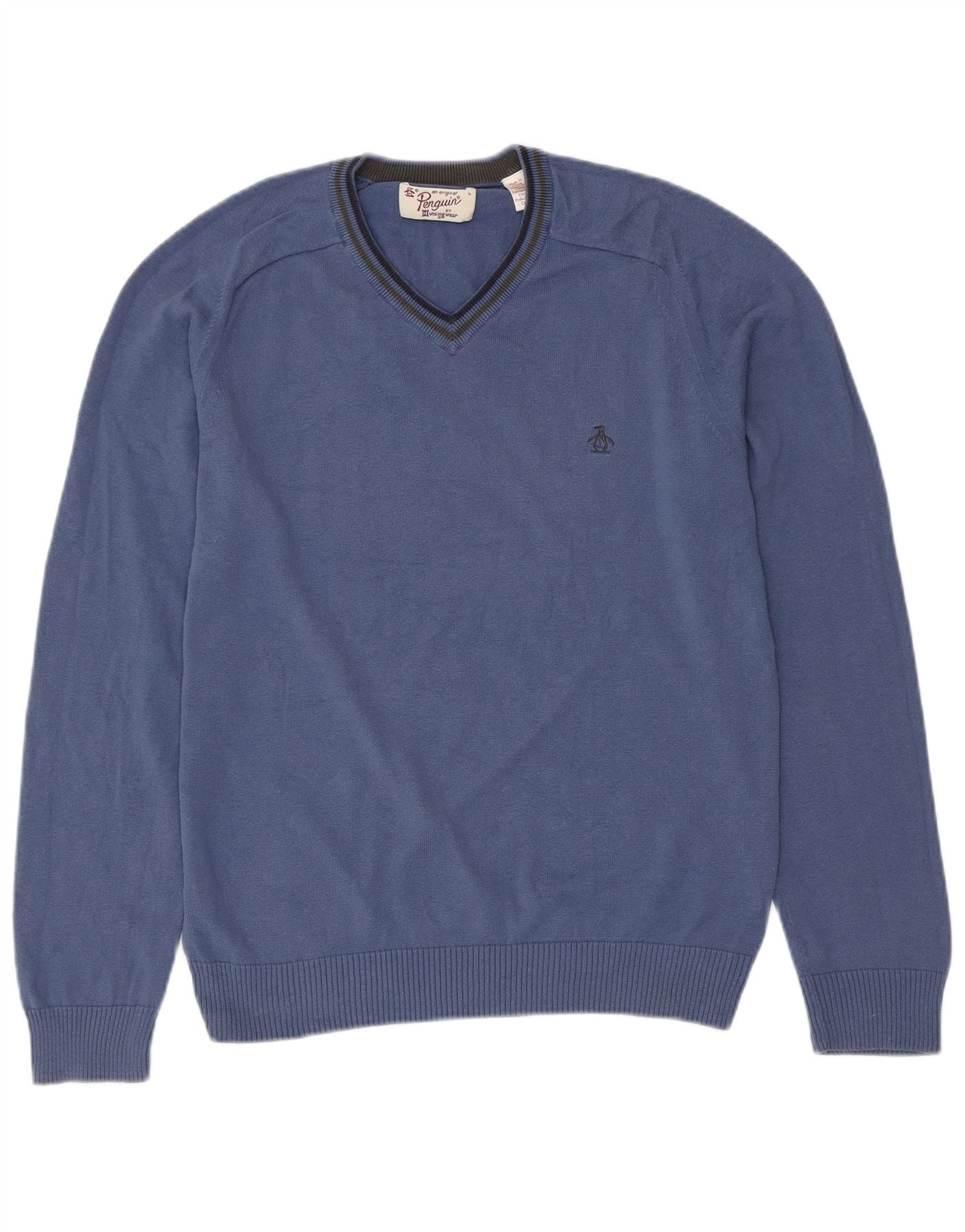 Мужской джемпер с v-образным вырезом PENGUIN, большой синий хлопковый свитер