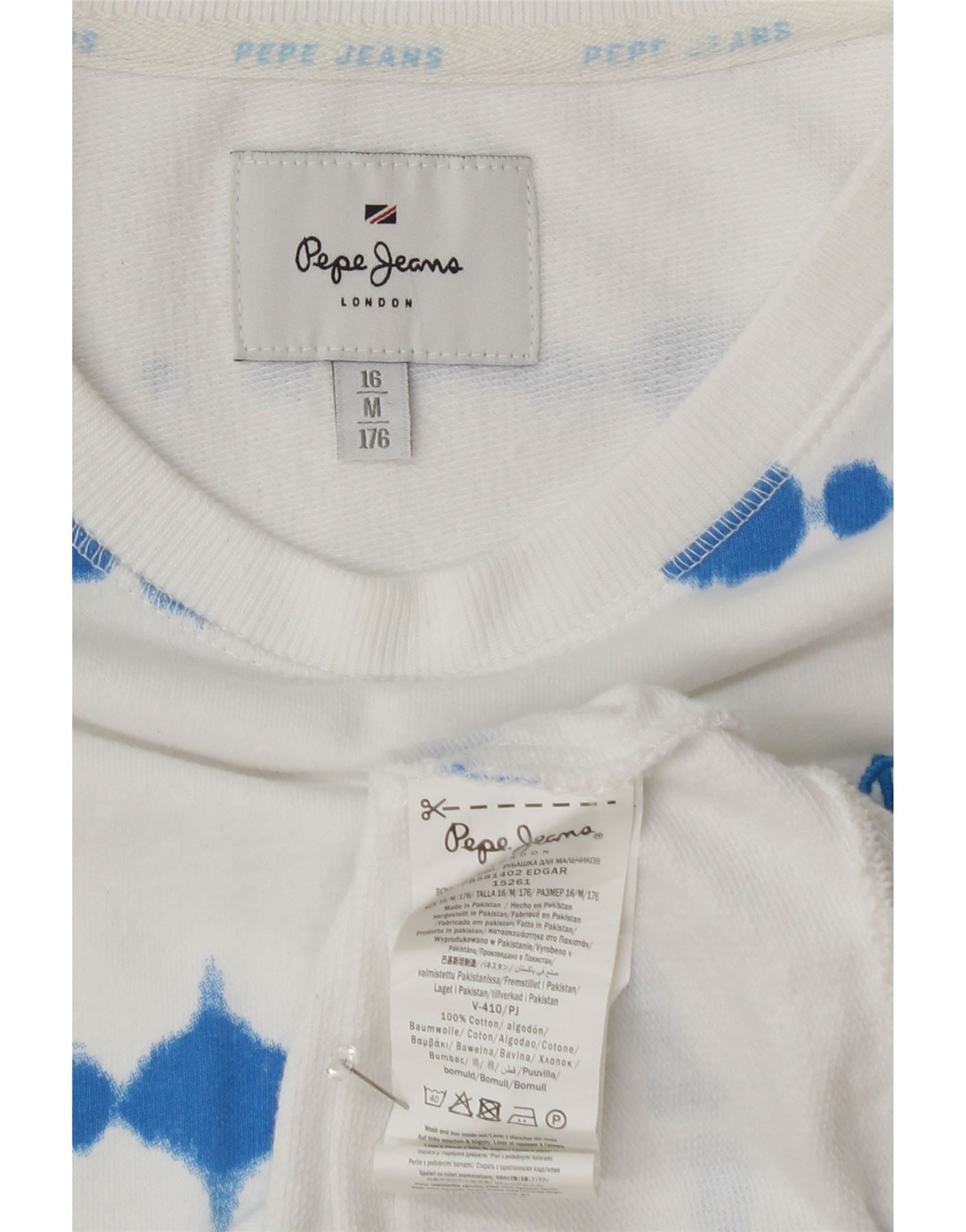 PEPE JEANS Boys Sweatshirt Jumper 15-16 Years Medium White Striped Cotton