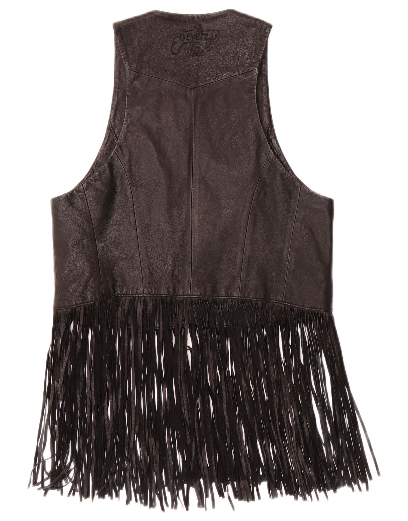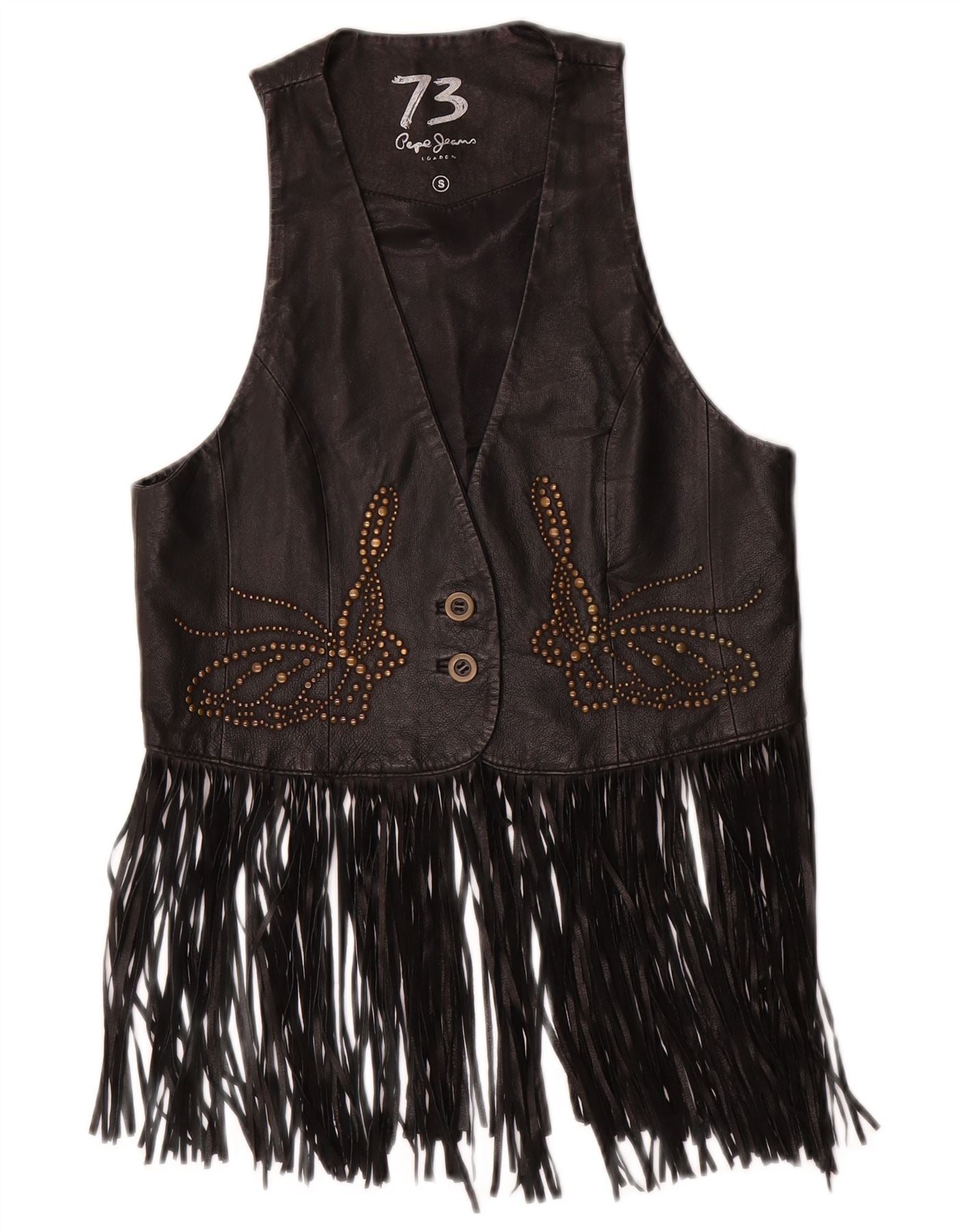 PEPE JEANS Женский кожаный жилет UK 10 маленький черный кожаный ковбой