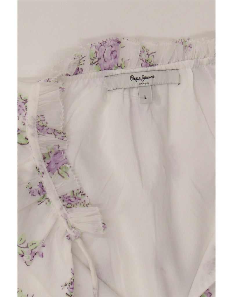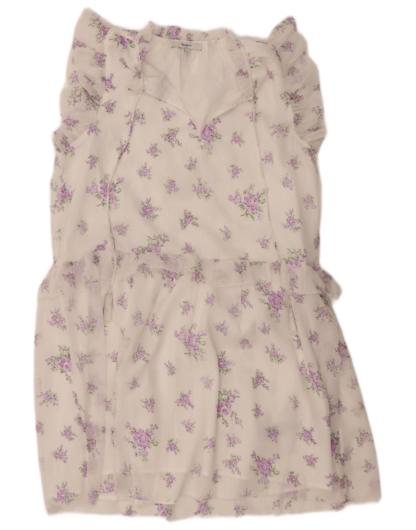 PEPE JEANS Womens Ruffle Basic Dress UK 16 Large White Floral Polyester