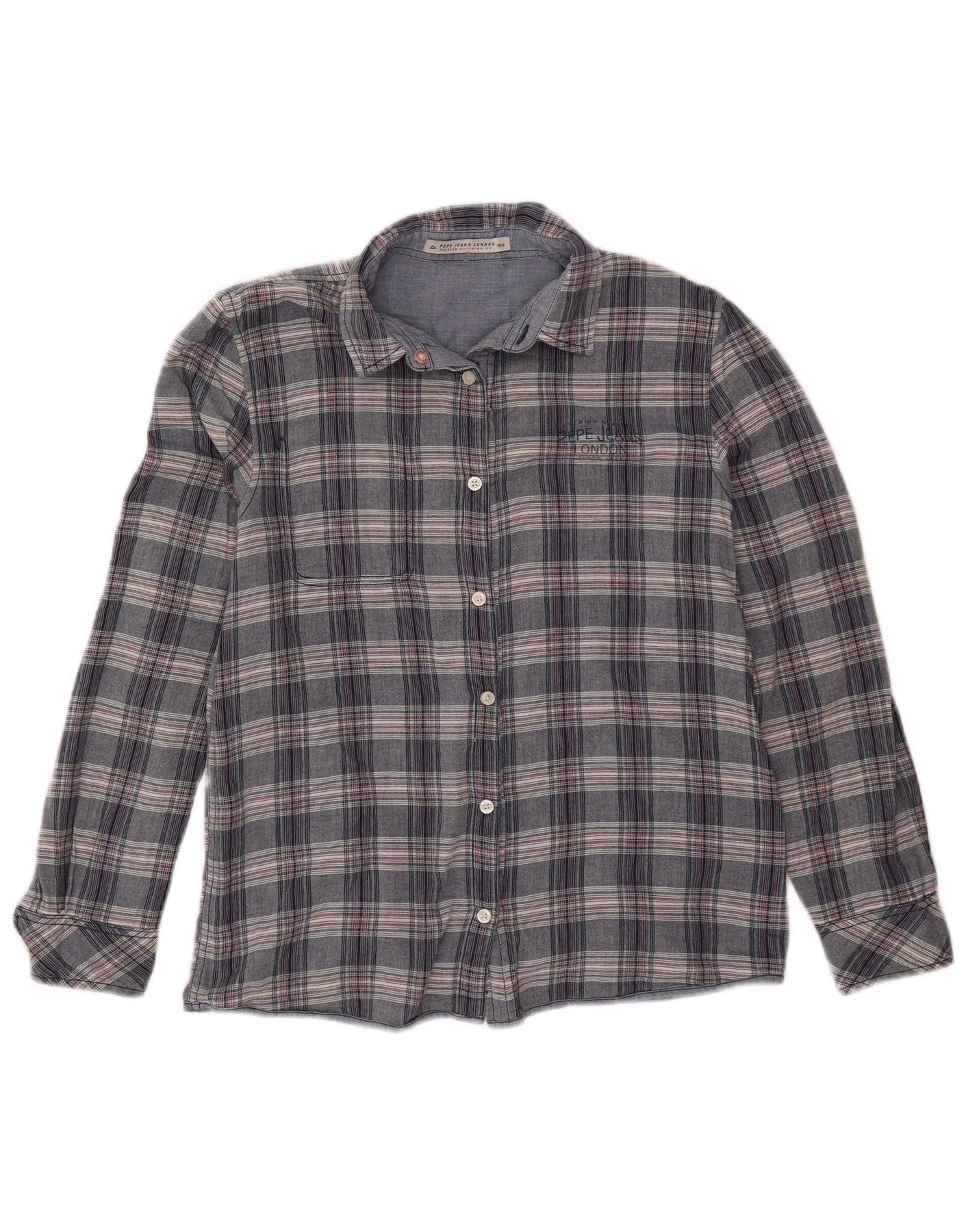 - Описание ИИ: Двусторонняя джинсовая рубашка для мальчиков PEPE Jeans изготовлена из шамбре нежно-синего цвета. Имеет классический воротник с воротником и длинные рукава с манжетами на пуговицах. Регулярная посадка обеспечивает комфортное ношение. Одна сторона имеет однотонную синюю отделку с нагрудным карманом и тонким логотипом. На реверсе изображен стильный клетчатый узор в серых и красных тонах. Застежка на пуговицы дополняет дизайн, предлагая универсальные варианты стиля для любого случая.