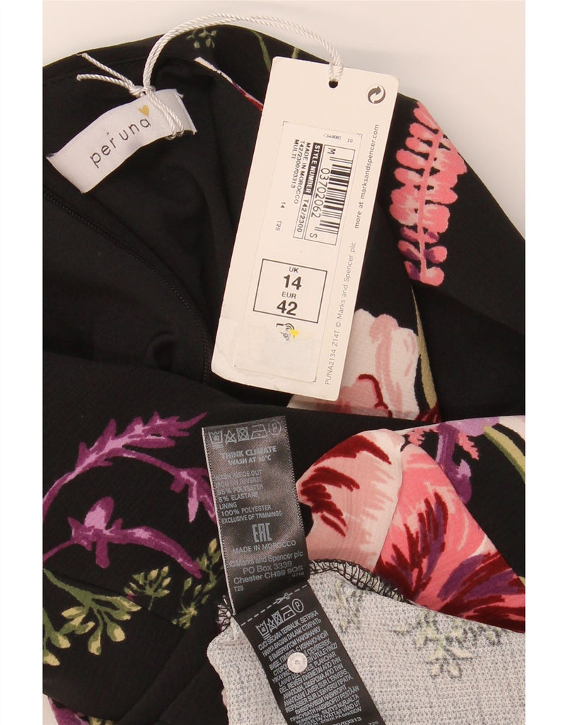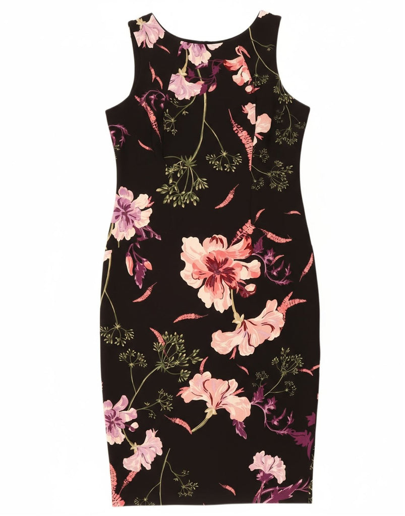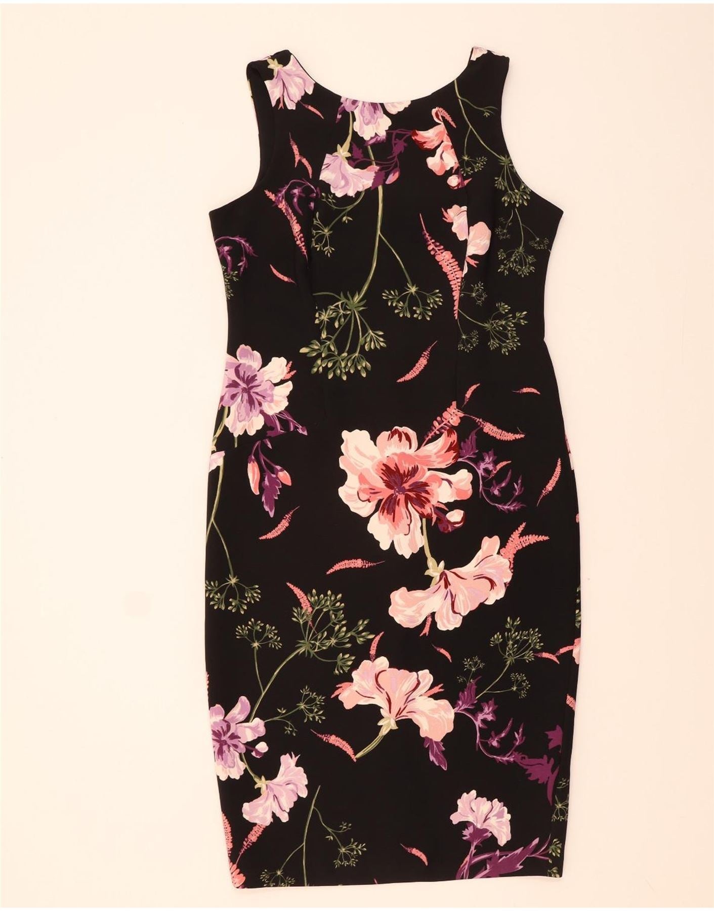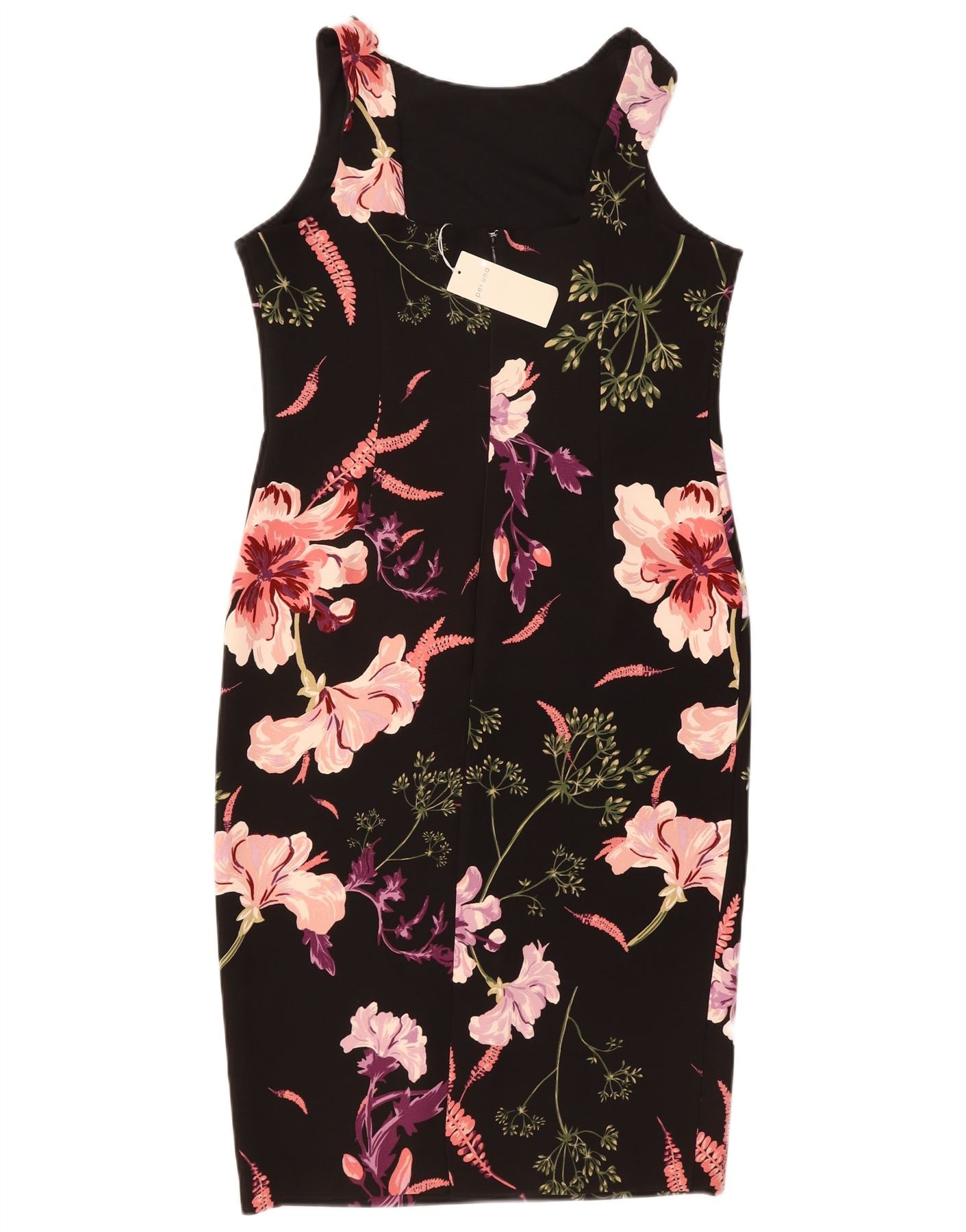 PER UNA Womens Sleeveless Bodycon Dress UK 14 Large Black Floral