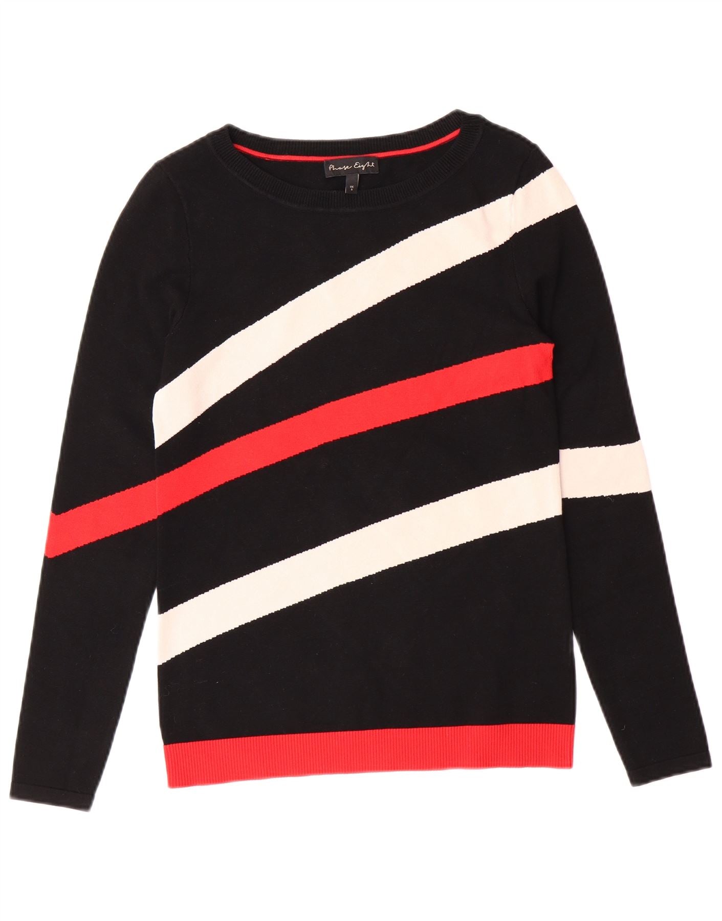 PHASE EIGHT Womens Boat Neck Jumper Sweater UK 8 Small Black Striped